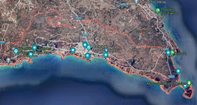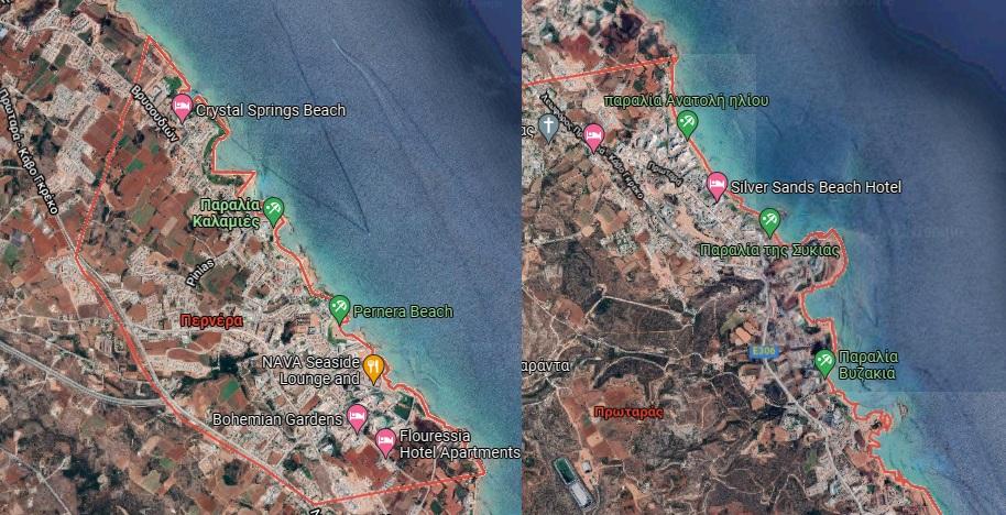The municipality of Paralimni ("Near Lake", if literally translated into English) is the largest. So large that its coastal part is divided into four areas on our website, and Google Maps indicates it incorrectly.