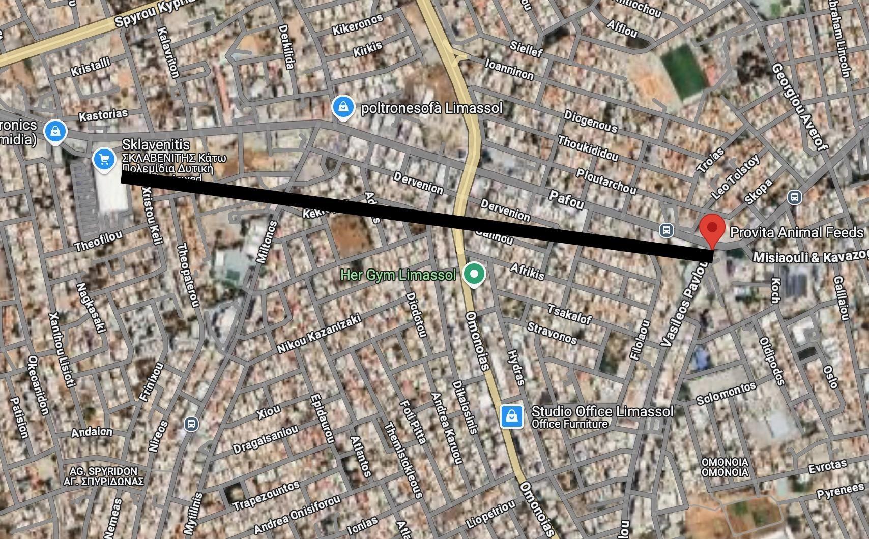 The British built the airport in the fields northwest of the city limits at the time. The runway began at the current Provita factory on Vasileos Pavlou Street and crossed the current Omonias Avenue (which did not exist at the time), as well as Miltonos Street. It ended approximately at the current Sklavenitis supermarket (formerly the central warehouses of the Lanitis company). In other words, the runway ran roughly along the current Paphos Street.