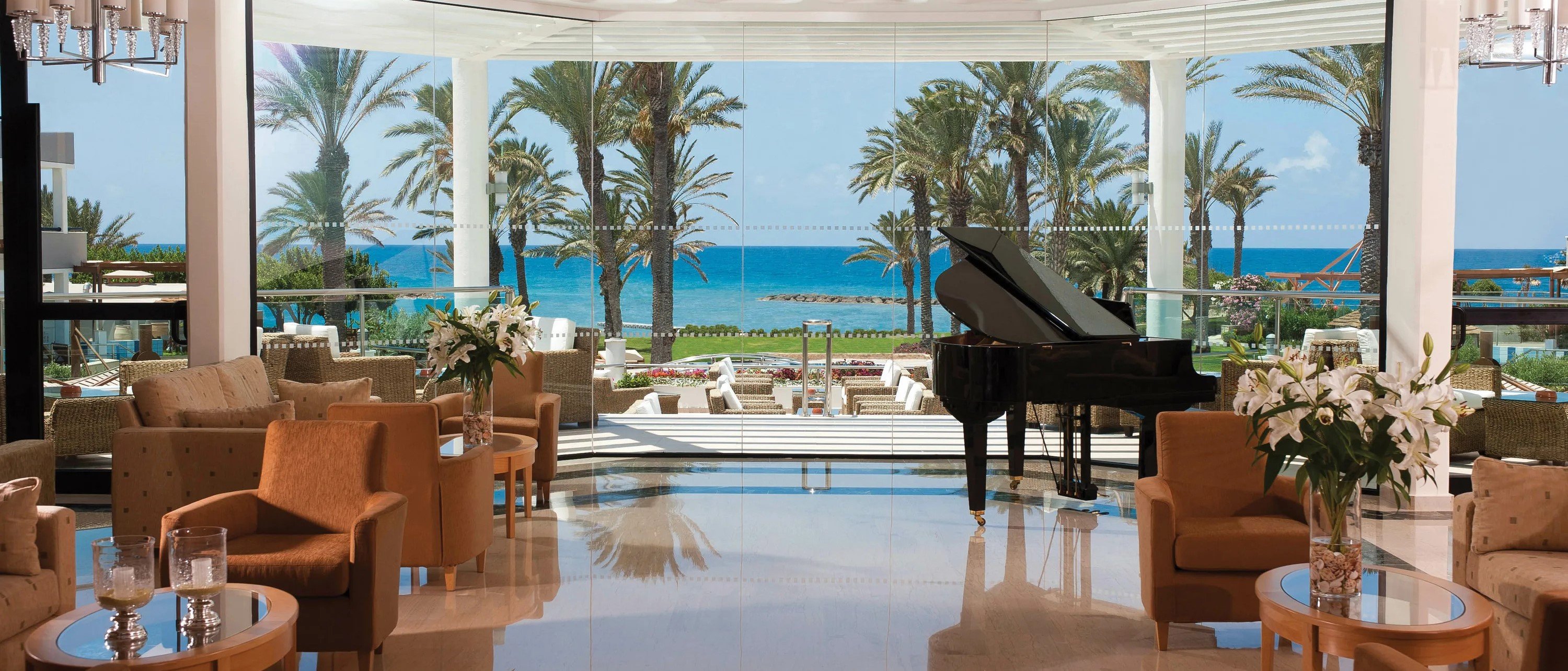 - Elysium Hotel (on map) - This luxurious 5-star hotel exudes an atmosphere of elegance and serenity. The interior is reminiscent of a modern palace. Outside, there are gardens, multi-level swimming pools and even a small amphitheatre and sandy cove. The hotel has a spa and five restaurants serving Cypriot, Mediterranean, Italian and Asian cuisine.