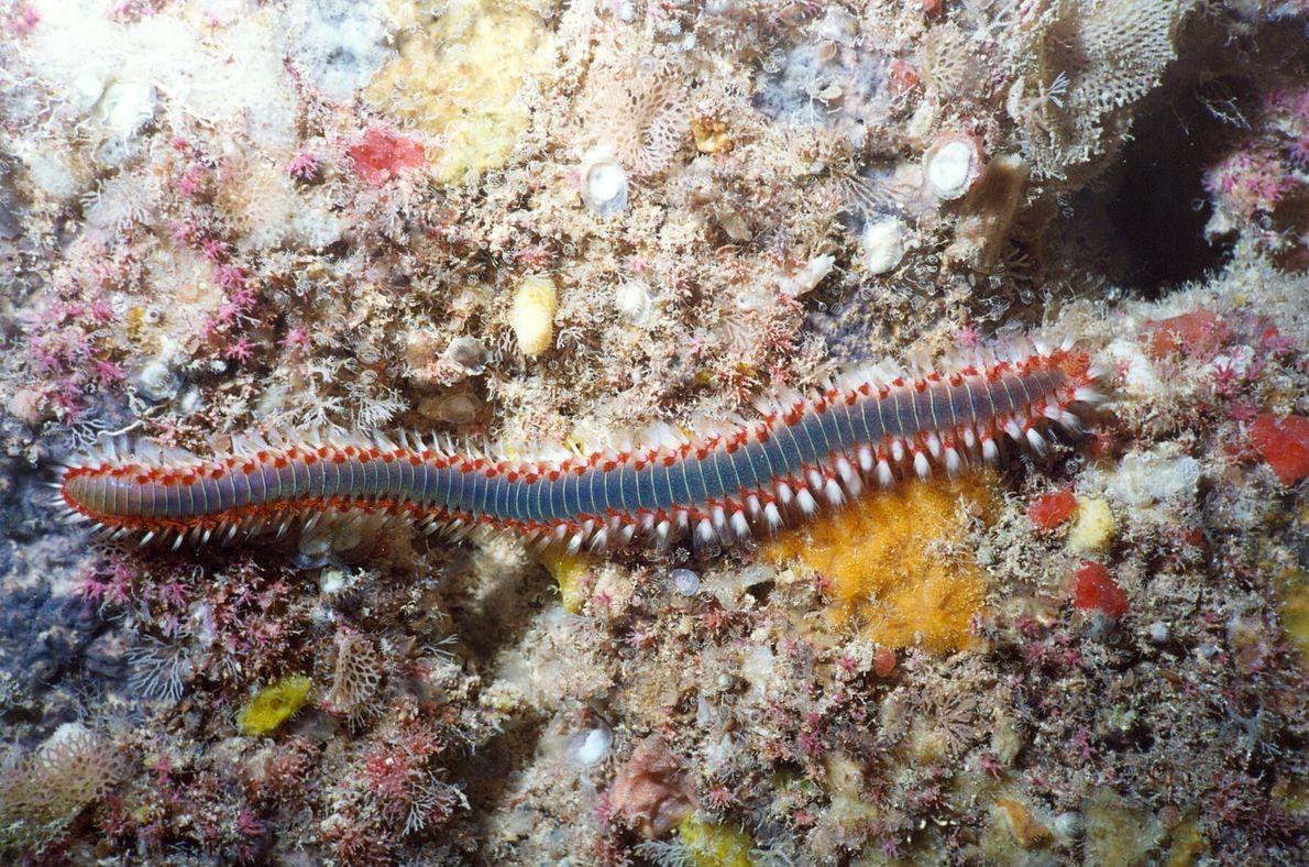 In the waters around Cyprus, you may also encounter unusual creatures known as fireworms, scientifically called Hermodice carunculata. Reaching 10–30 cm in length, they are indeed relatives of worms that have adapted to marine life over the course of evolution. At first glance, fireworms look soft and harmless: their bodies are covered along the sides with numerous fine bristles that resemble fluffy fur. Their bright green, orange, and reddish hues immediately catch the eye.