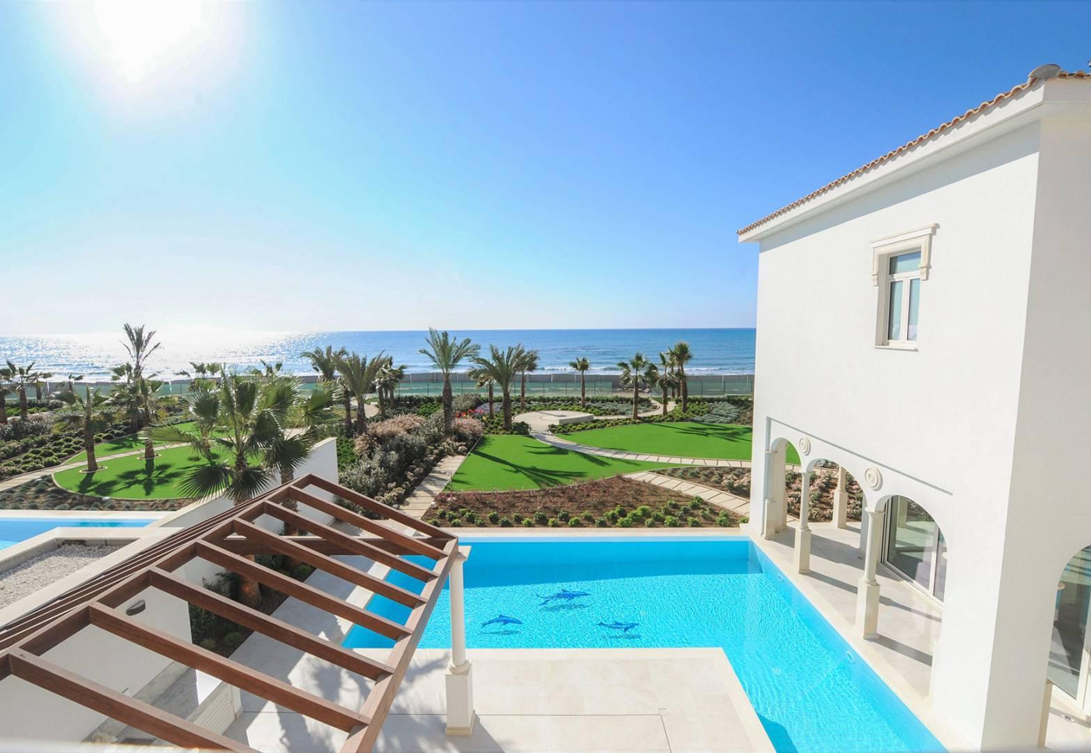 The most expensive offering in the Pervolia area today is this luxurious new five-bedroom villa priced at €5,520,000 (+VAT). This 795m2 luxury property is situated on a plot of 1,823m2 and is just 10 metres from the sea, offering incredible sea and mountain views. The villa, which will be built in 2021, is equipped with all modern amenities: there is a swimming pool, sauna, gym, central heating and underfloor heating. The gated complex offers a high level of privacy and security. The finishes are of the highest quality, creating an atmosphere of luxury and comfort. The villa is ideal for those who appreciate comfort, privacy and sea front living.