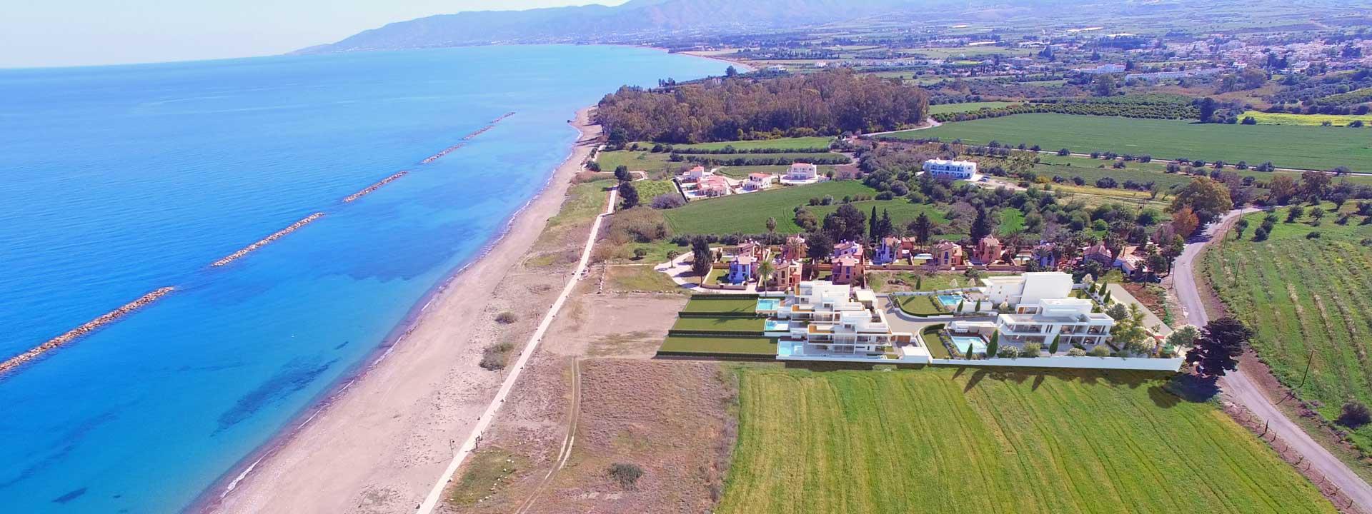 One of the most luxurious projects in the area is Calma Beachfront Villas. Located just 50 meters from the sea, this residential complex offers 4 bedroom villas with swimming pools. The area of each building varies from 423 m2 to 603 m2 and the cost starts from 1.85 million and reaches 3.4 million euros. The complex offers residents a unique first line seafront living experience, making it ideal for those seeking privacy and luxury.
