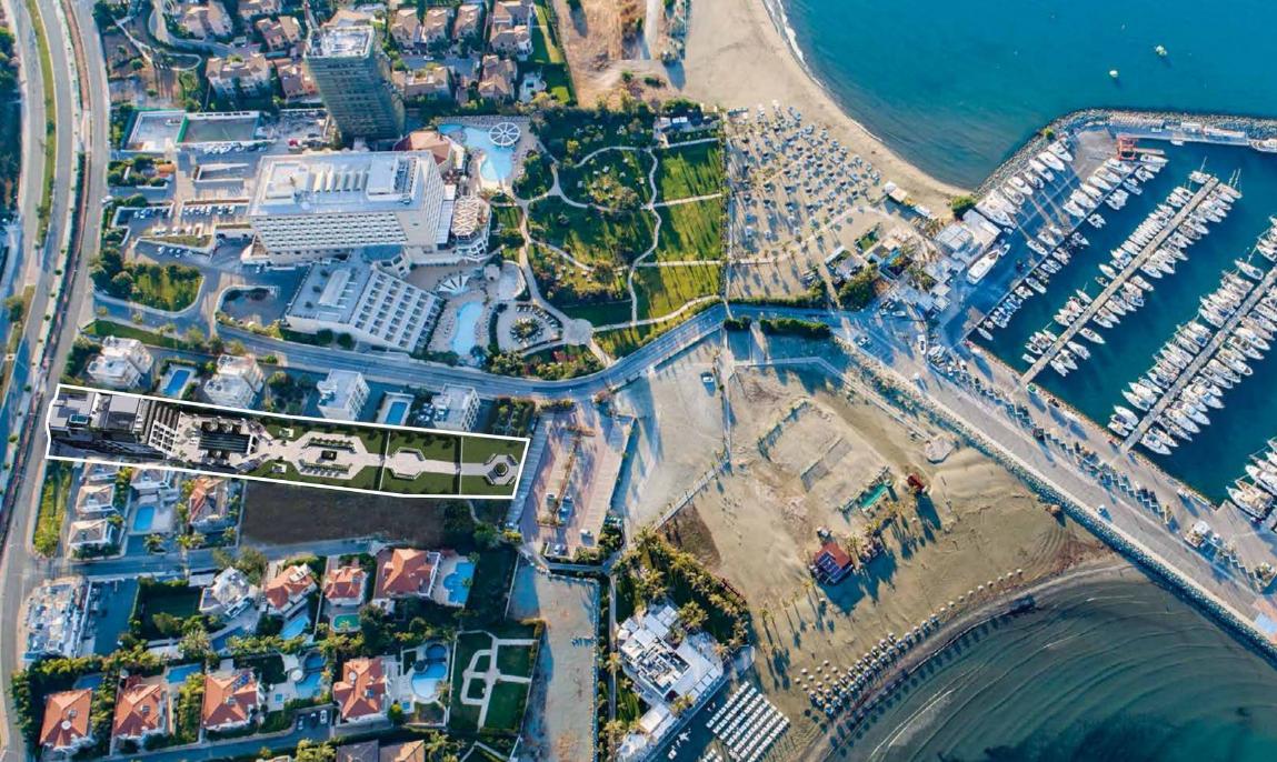 This beautiful luxury complex is located at the very beginning of the Finikoudes embankment, which provides access to everything you need. In addition, there are transport interchanges nearby so that you can quickly get to the city center, the airport, the mountains and even to Limassol.