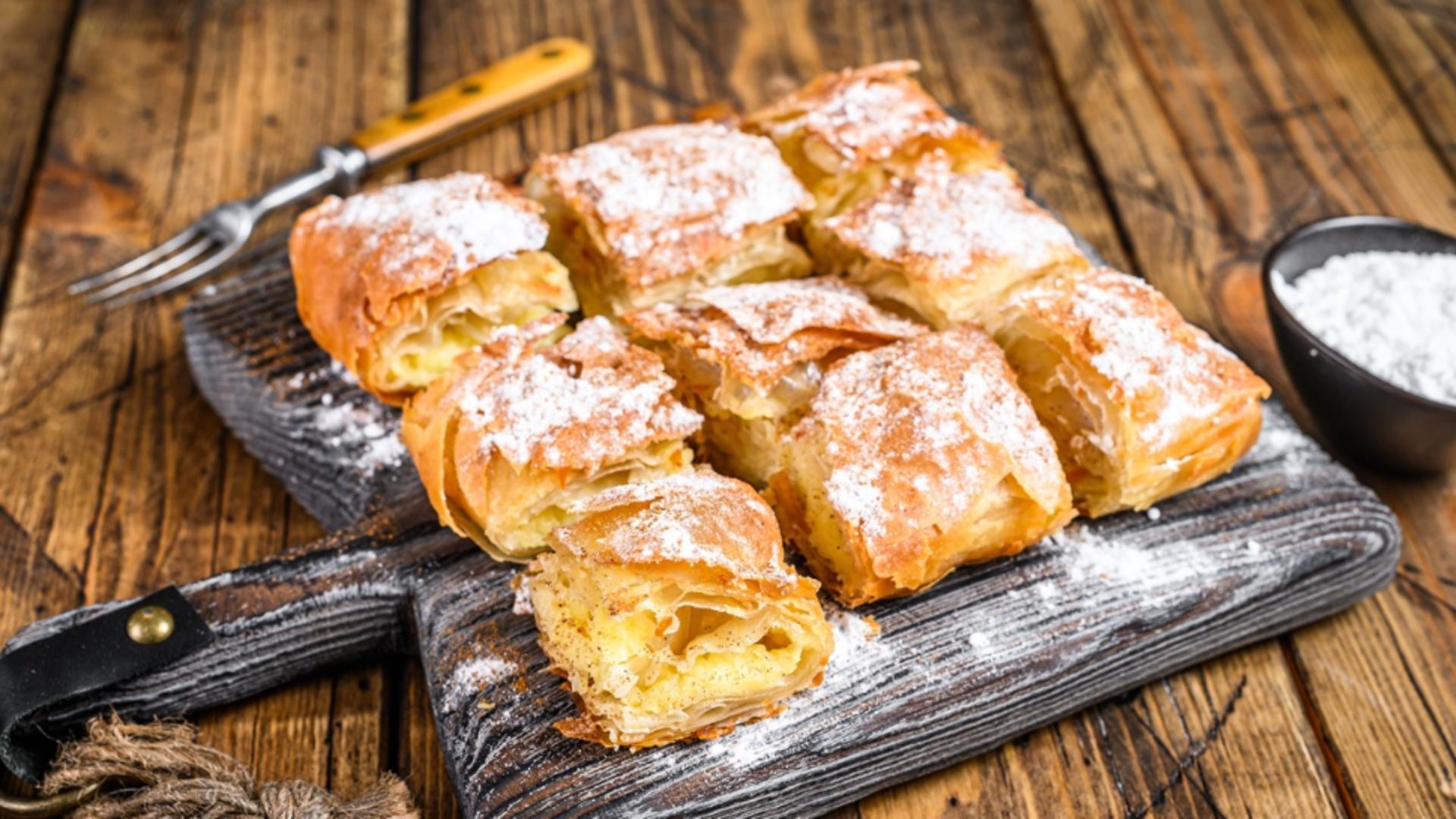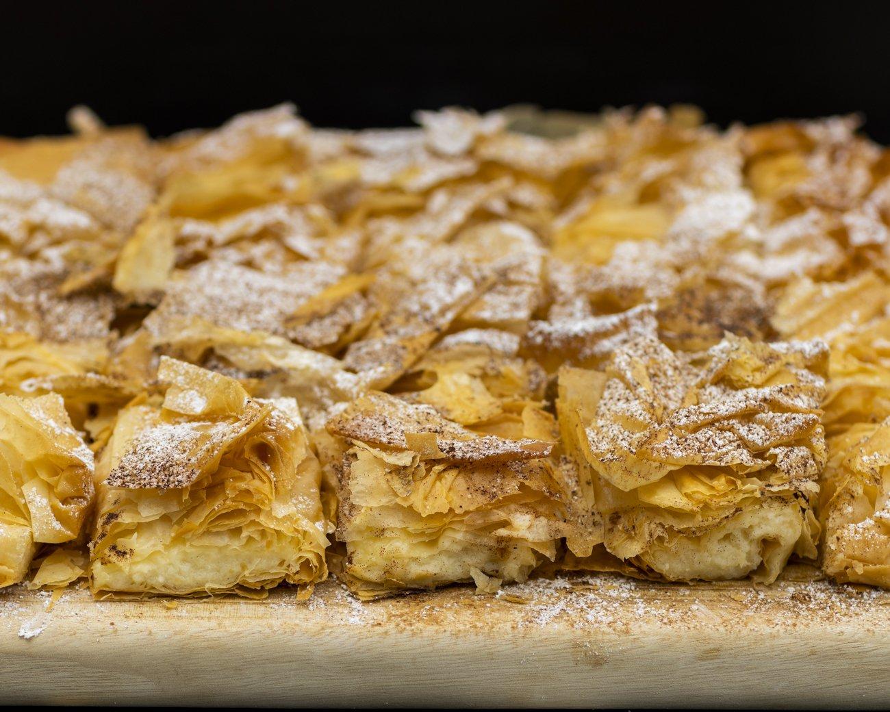 When speaking of Cypriot pastries, one cannot overlook bougatsa (μπουγάτσα). It's important to note that, unlike in some parts of Greece—where bougatsa can be filled with cheese or meat—on Cyprus, it is predominantly known as a sweet pie with delicate custard filling.