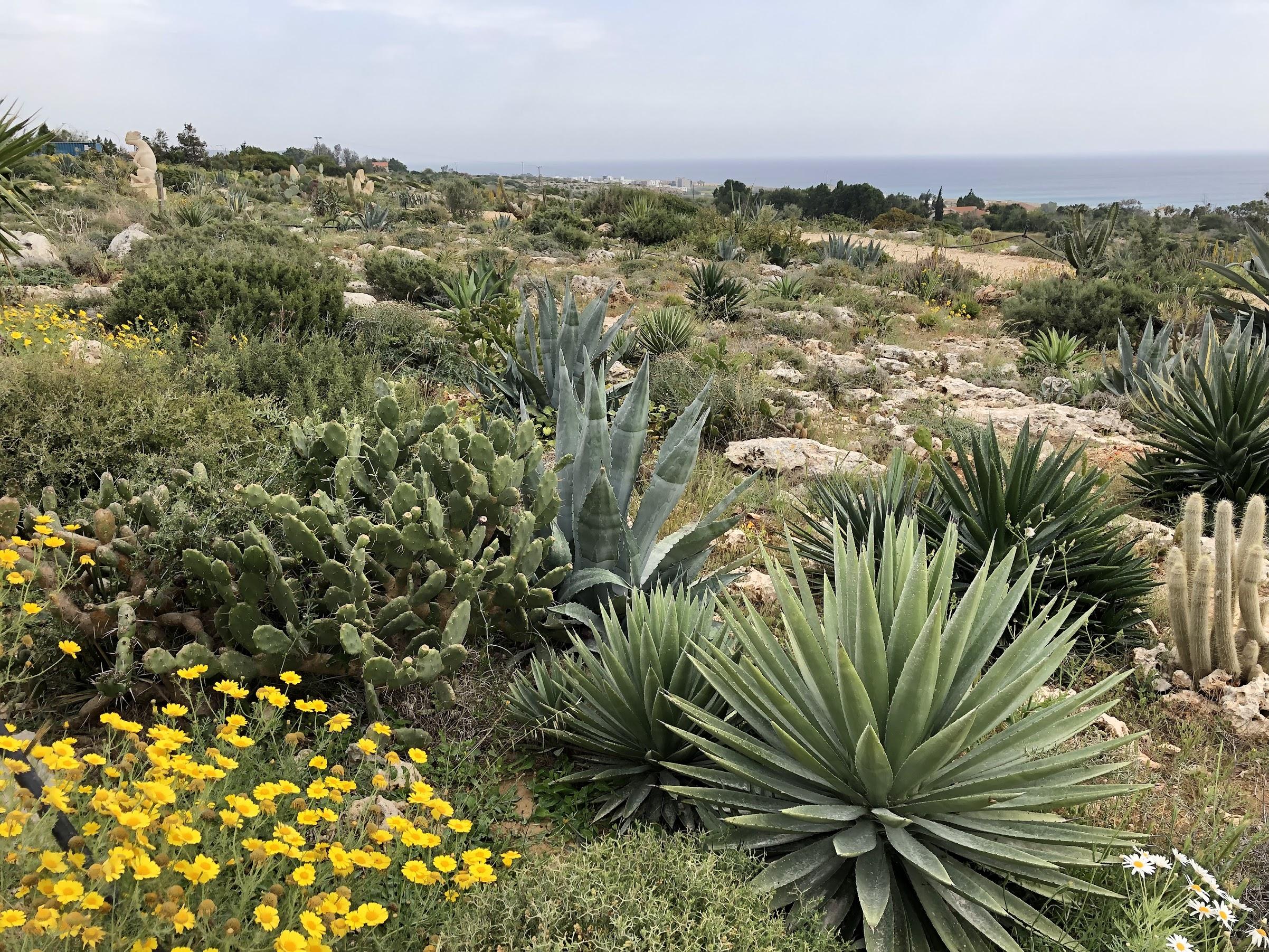 The sculpture park connects to the Cactus Park (also free to visit). Therefore, gradually, instead of stone art objects, some of the most unusual creations of nature will take their place on your phones. Today, the number of succulents reaches 8000 (about 300 species). This is the largest gathering not only in Cyprus, but also in the entire Mediterranean region. The first exotic plants were planted here in 2015, some of them were donated by local residents from their own home collections.