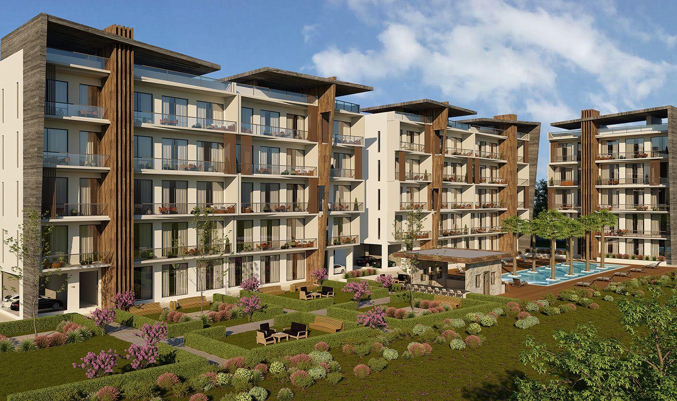 The complex will include not only everything you need (parking, playground, communal pool, gym), but also have a park nearby. This option is ideal for families with children and those who like frequent walks around the house.