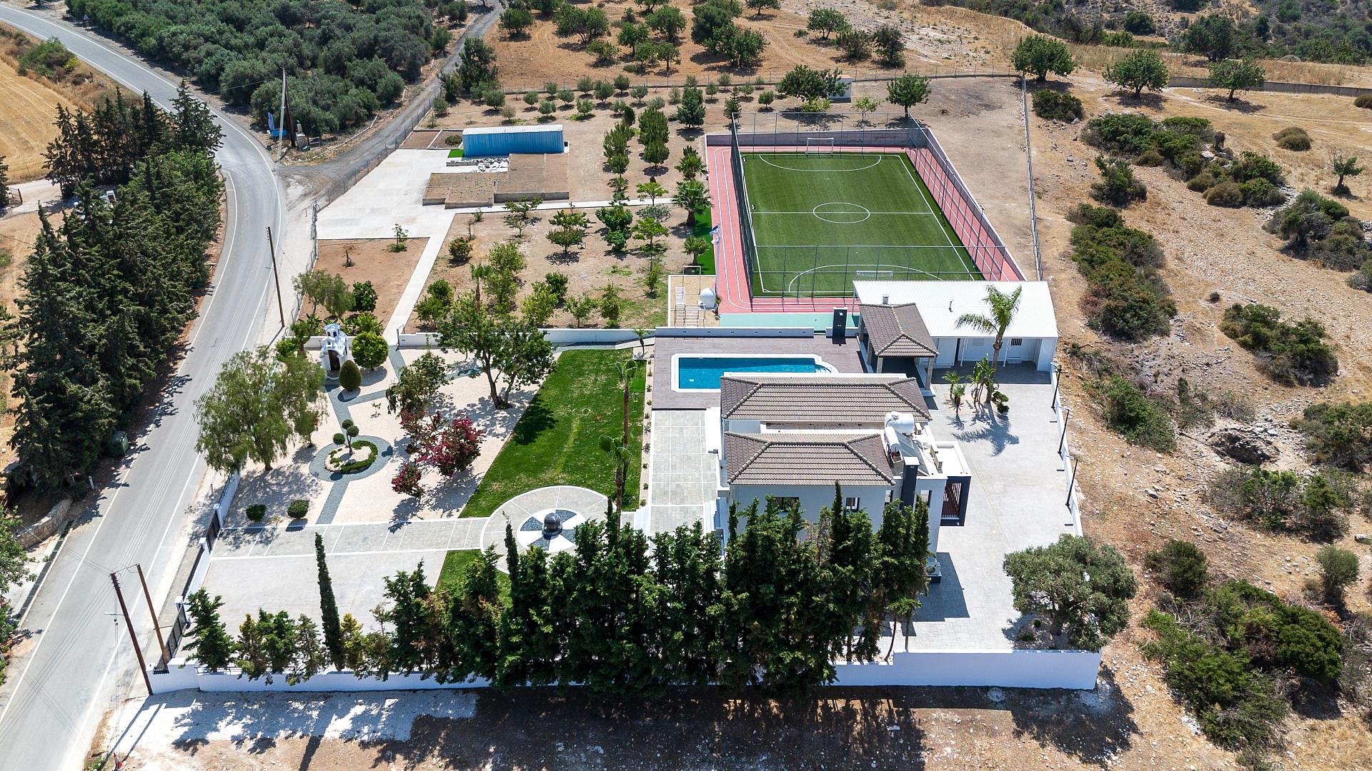 Technology, sports, and privacy: a new-generation villa with a soccer field in Cyprus