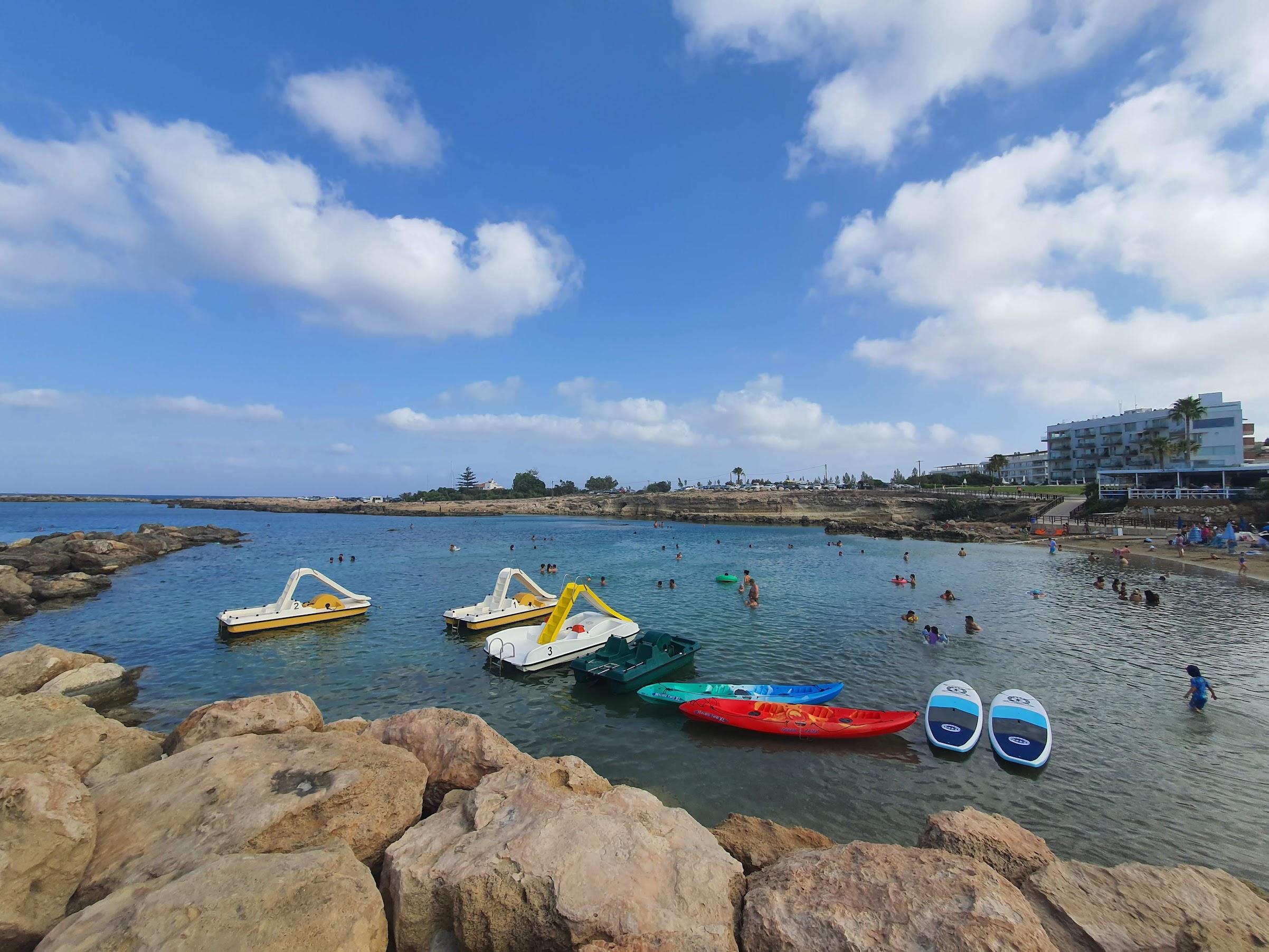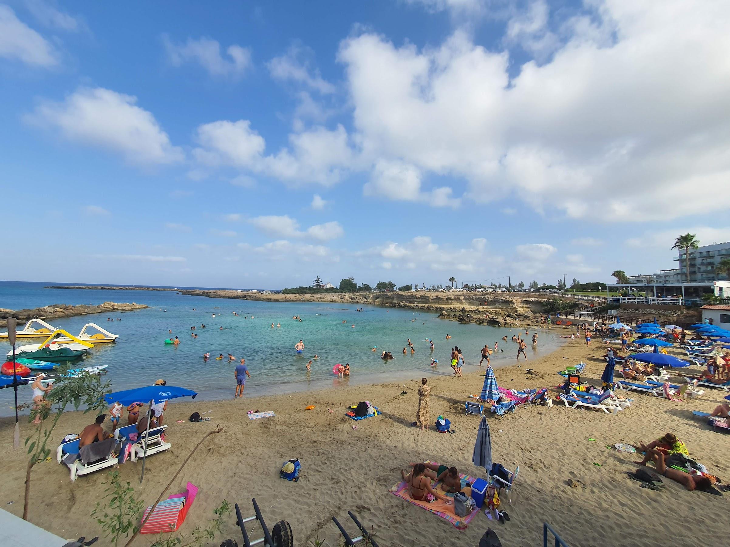 A very small beach near Protaras, surrounded by stones, but the entry into the water is sandy. A very quiet and secluded place worth looking for next to the hotel of the same name. Ideal for those who do not want to join the crowd of tourists and prefer to relax alone.