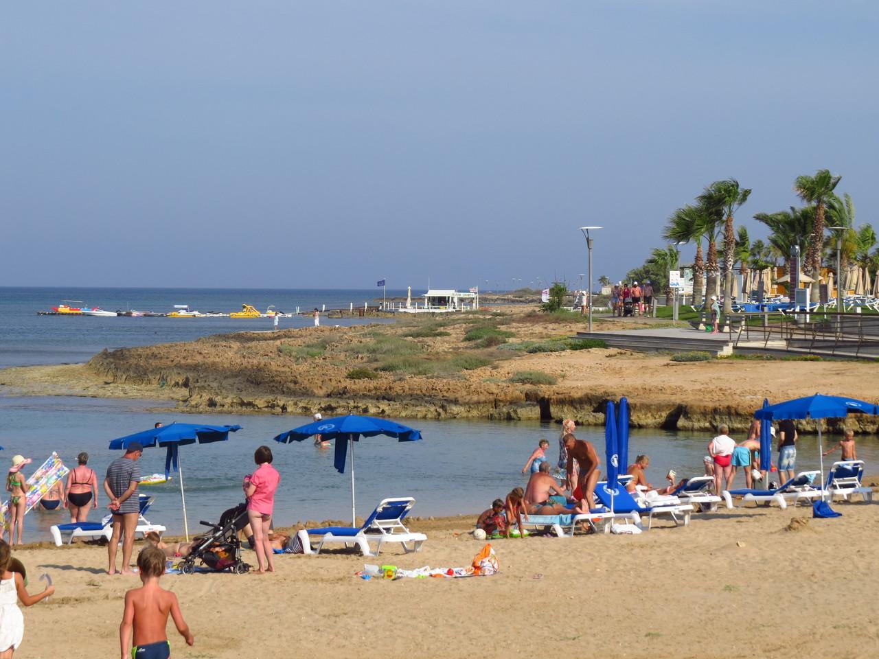 Another small beach in Protaras that has only hotels nearby. However, the entrance is free, and you can have a quiet and good rest by the sea. It is convenient to swim - entering the water along the sand and with a smooth slope, which will appeal to both adults and children. A sun lounger and / or umbrella can be rented.
