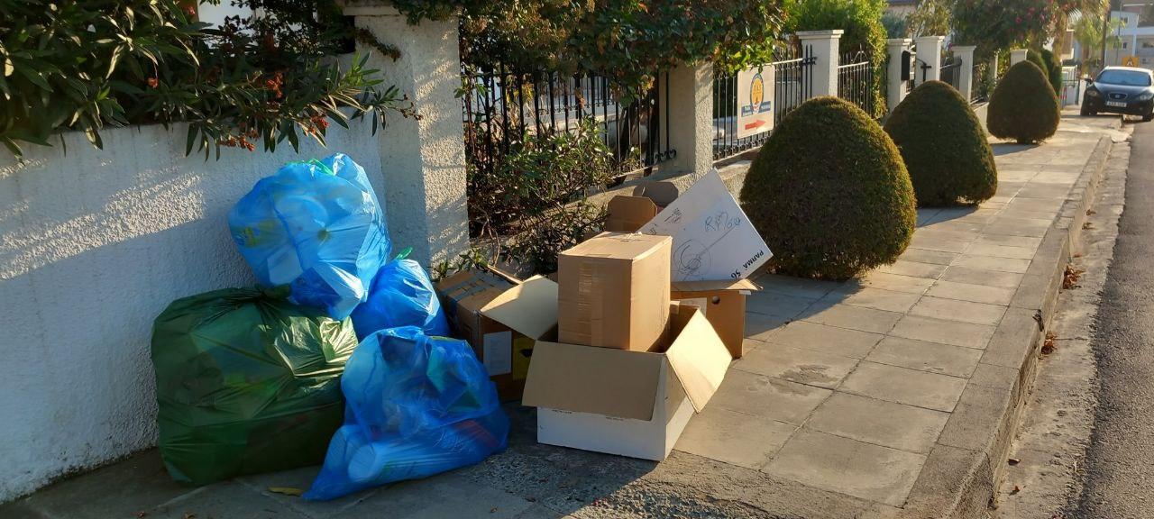Sorting in Cyprus can be very simple and straightforward, as in the photo above. Or it can be based solely on the imagination of private homeowners due to a lack of colourful bins, as in the photo below. The only thing to bear in mind is that sorted rubbish is collected on certain days. Tuesdays, for example. So there is no need to put all that beauty out on the street on Wednesday morning.