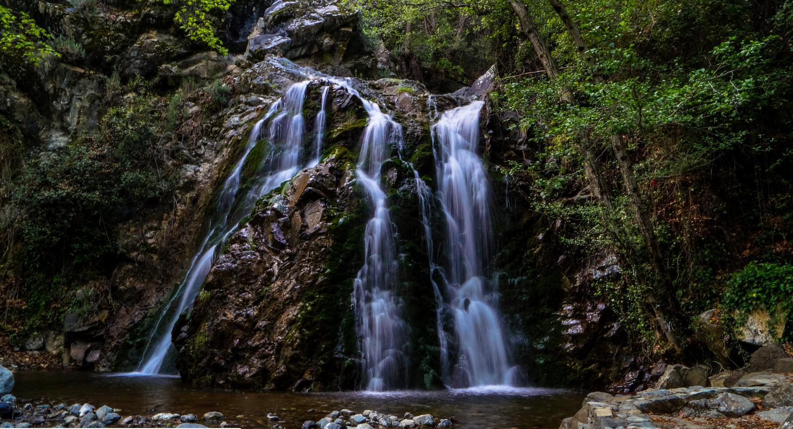 One of the most famous waterfalls in Cyprus is near the village of Platres. The water falls from about 12 metres high, and the path to it follows the same name trail through a shady coniferous forest along the Krios Potamos River. The route is about 3 km one way and takes about 1.5 hours there and back. There are some inclines and declines, but overall, the trail is fairly easy and good for most tourists.
