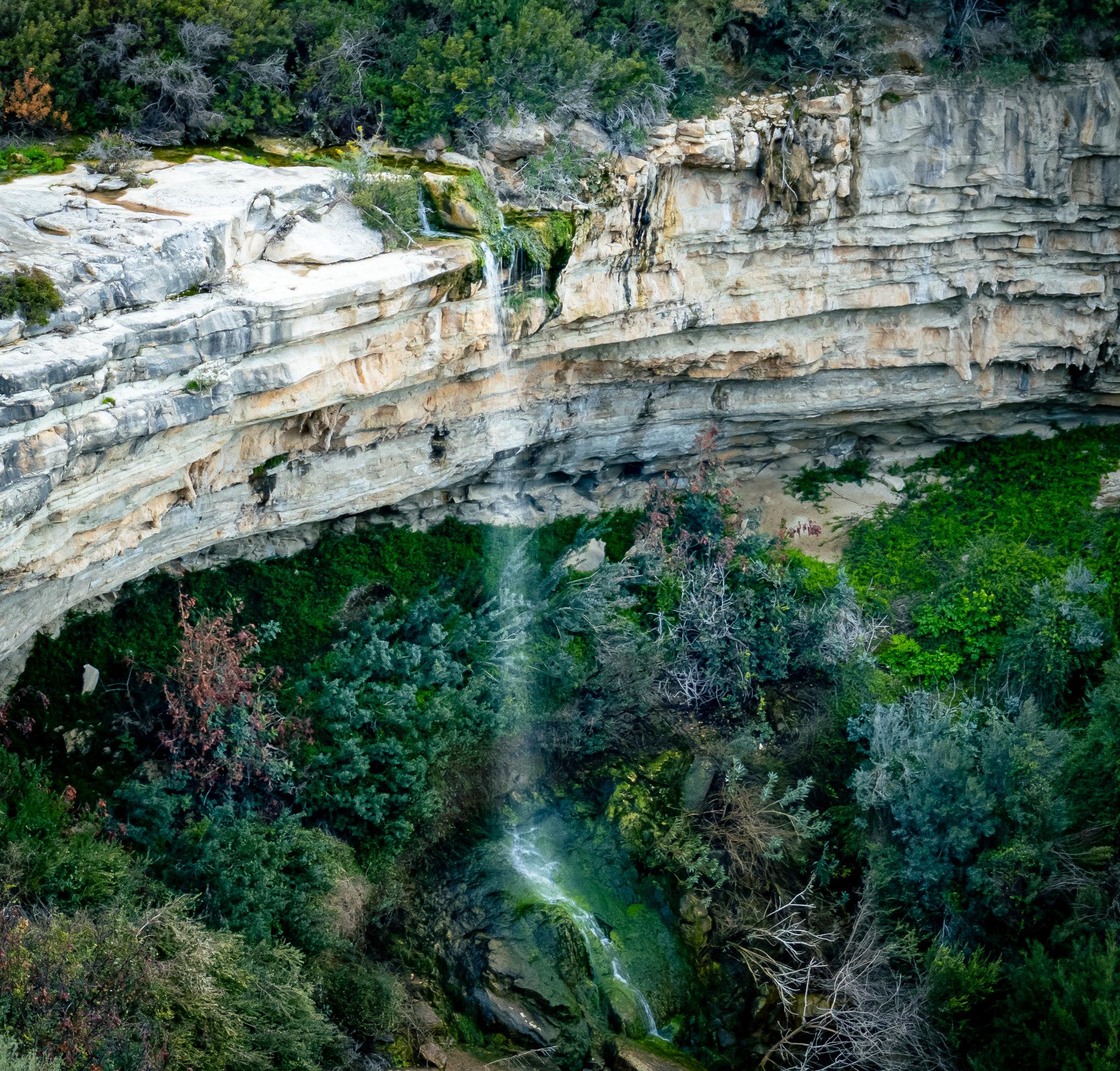 It's between the villages of Prastio and Avdimou, in a more remote part of the Limassol district (closer to the border with the Paphos district). The waterfall itself is one of the most inconspicuous but spectacular natural sites in the area. The road to it is long: about 22 km there and back, with an elevation difference of almost 600 metres and a travel time of about 6–7 hours. It's only really suitable for experienced hikers who are prepared for long walks.