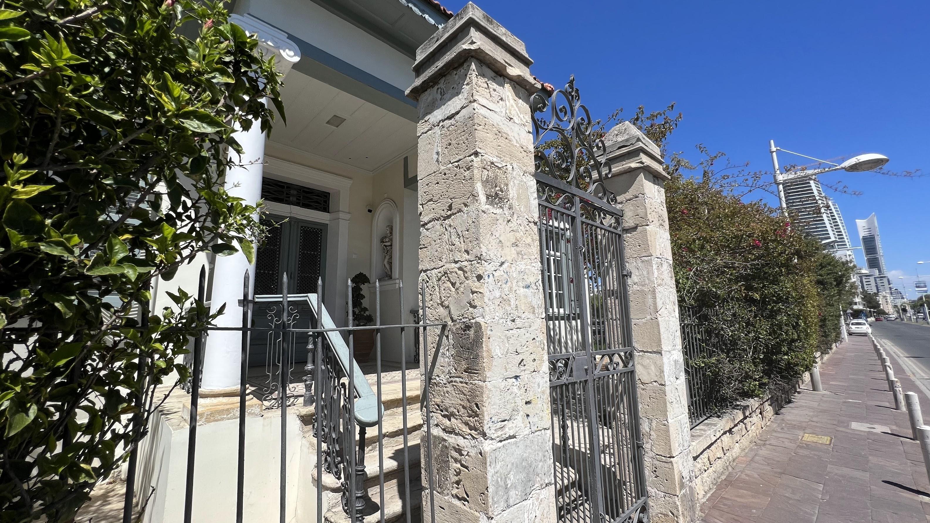 To be fair, it should be mentioned that during the renovation, the new owner preserved the historical facade of the building. The beautiful villa is surrounded by a garden and stands on a fairly large plot of land. This is one of the six historical buildings preserved on the Limassol promenade.