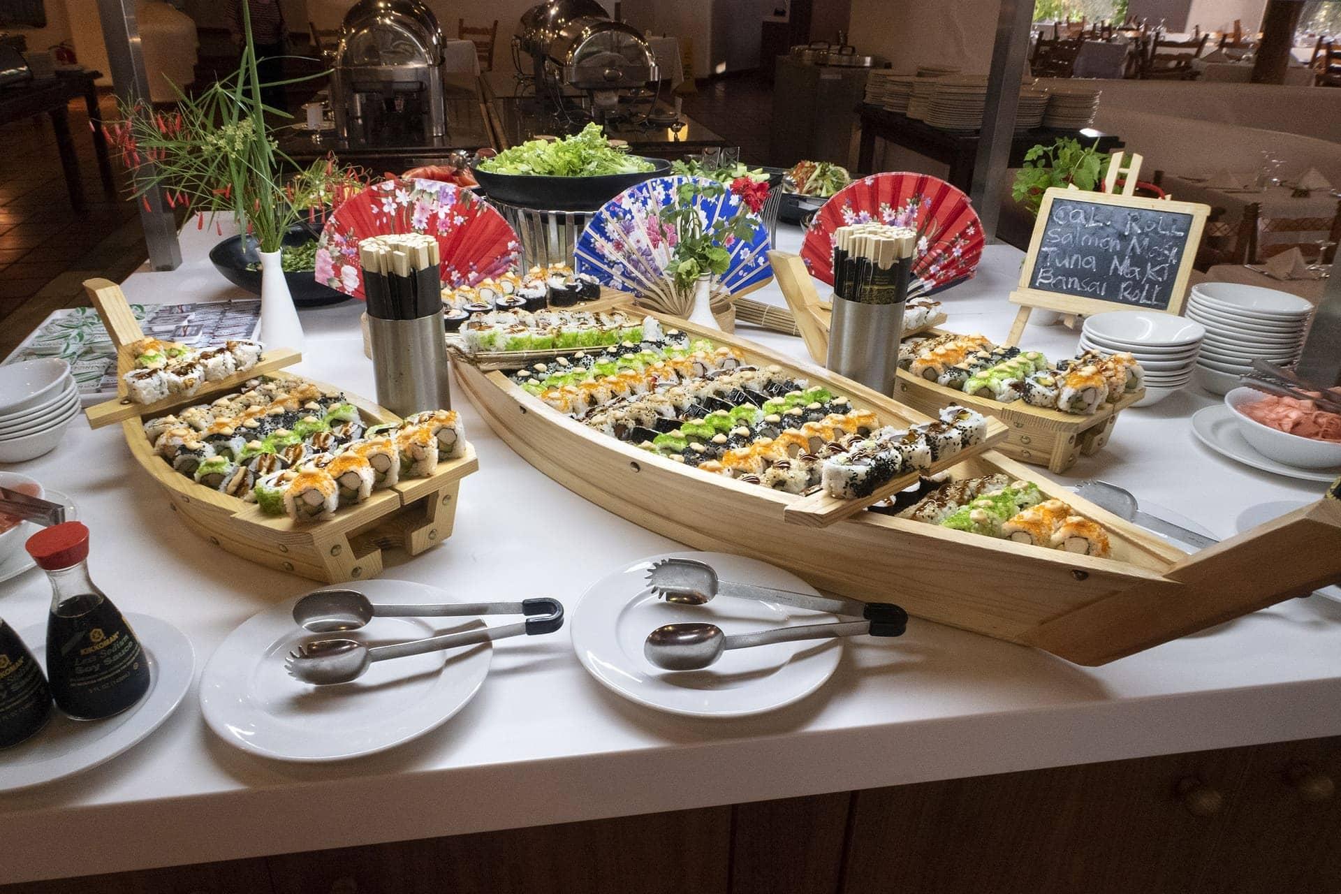 The hotel's culinary offerings are delicious and diverse. The colorful "Nikkei" restaurant, designed in a ranch-style, offers Japanese and Latin American cuisine. A hearty breakfast is served buffet-style, and themed dinners feature Cypriot, French, and Italian menus. Exotic cocktails, ice cream, and desserts are available in the bars.