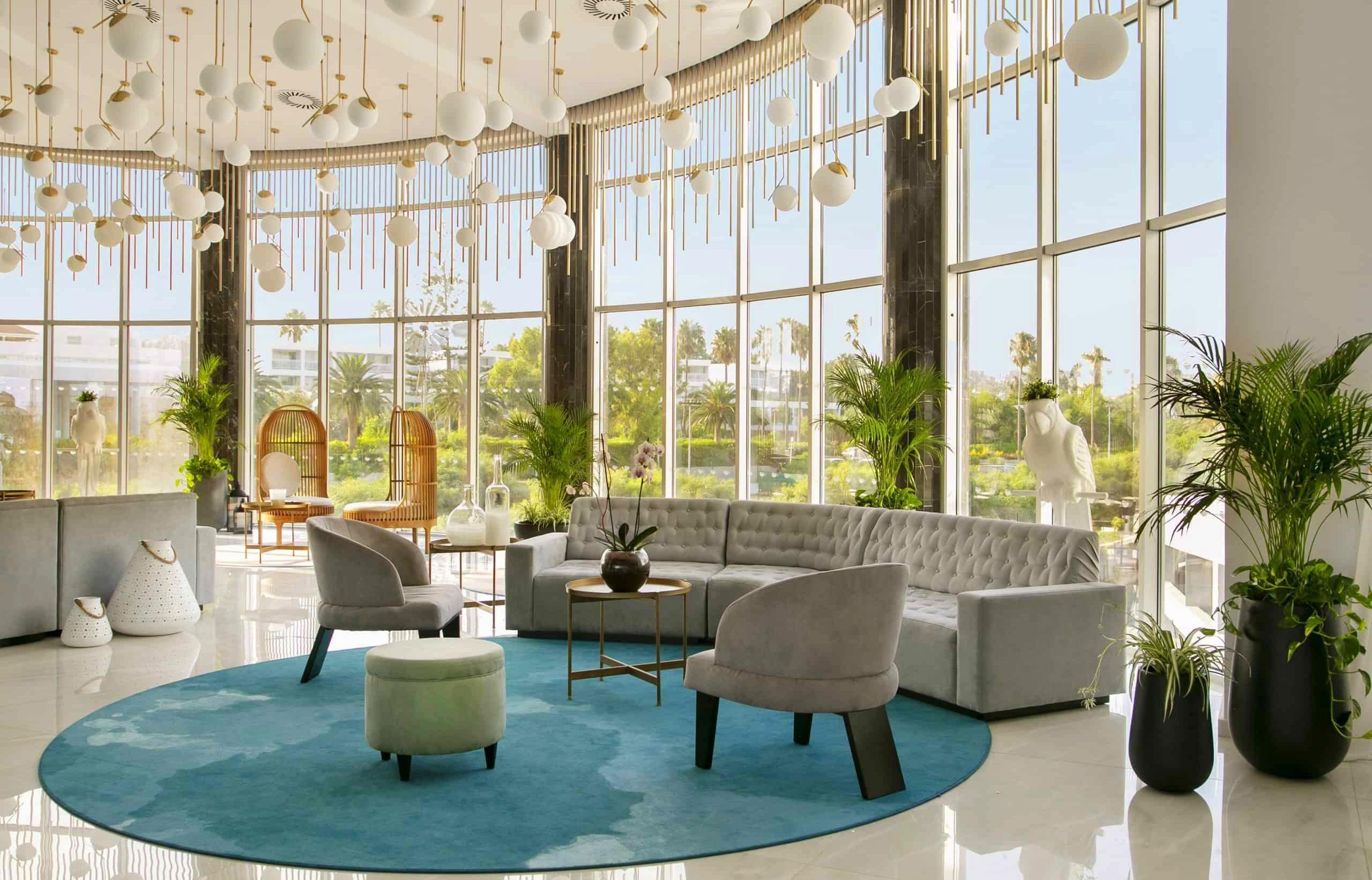 The hotel is located in a coastal palm garden on the eastern outskirts of Larnaca. The Scuba diving center and bowling club are nearby. The distance to the city center is 10 km, and to Larnaca International Airport, it's 15 km. Multi-story buildings are constructed parallel to each other at acoustically comfortable distances for residents. The cozy and spacious hotel rooms are themed around the sea.