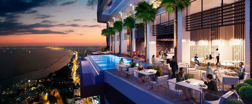 The Icon's feature is the two floors in the middle of the building. The Water Club is located on the 10th floor: it is an overflow pool (or infinity pool) with an amazing seaview.