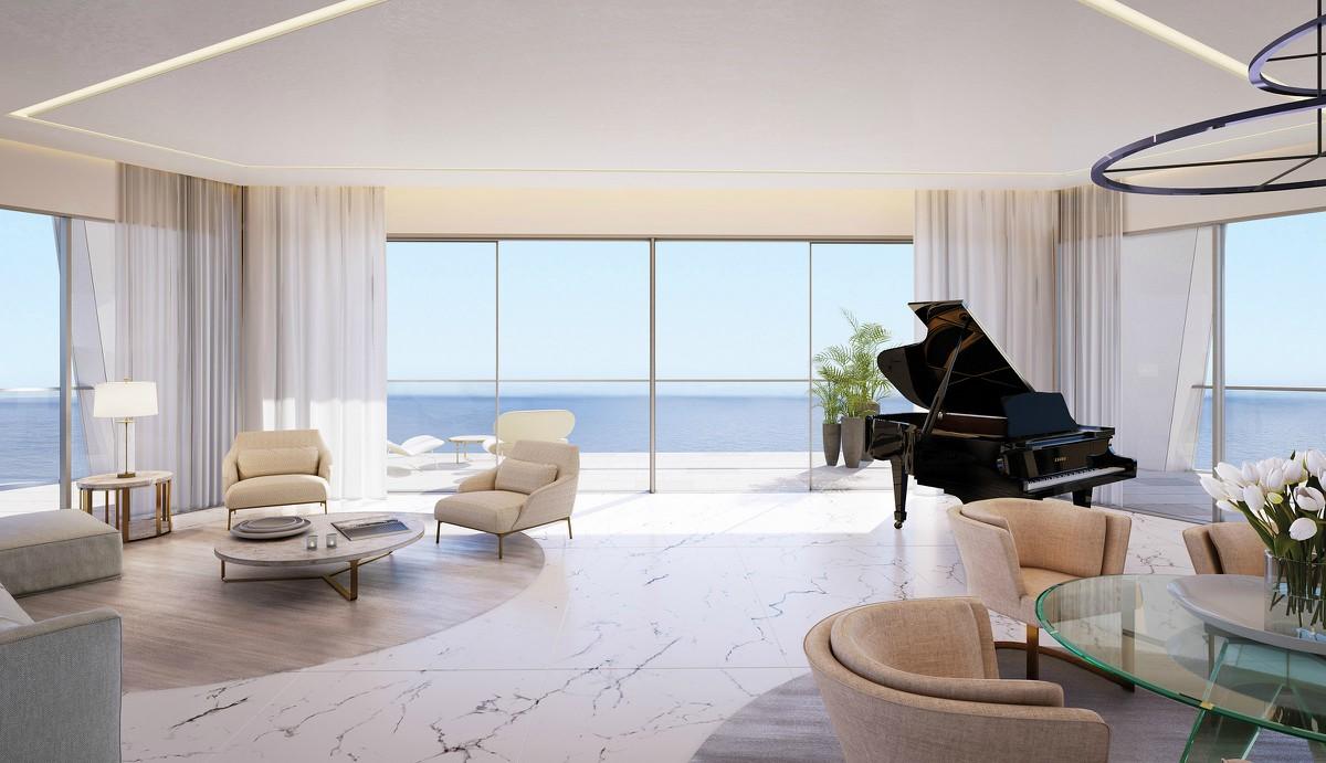 All apartments have an expensive interior (based on marble, glass and upholstered furniture), a built-in smart home system, improved air conditioning systems, high-quality household appliances, including in the kitchen, and of course, a spacious and comfortable layout. One bedroom apartments start at 110 m2 while the largest penthouse is 1013 m2.