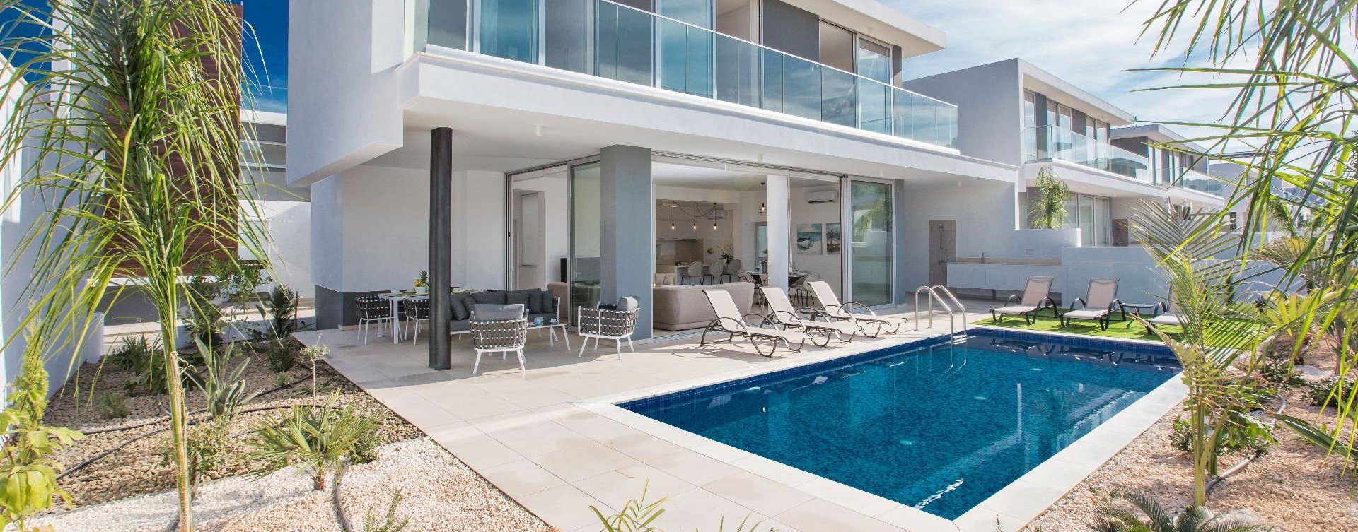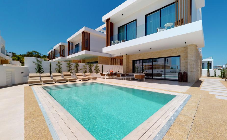The exclusive residential project Vivo Mare, consisting of 9 modern villas, is located on the picturesque coast of the Mediterranean Sea in the Ayia Napa area. It was built in 2020 and stands out for its modern technologies, high-quality finishes, and well-thought-out room layouts. The villas seem to be woven from light, with airy and visually light structures that create an atmosphere of relaxation and tranquility.