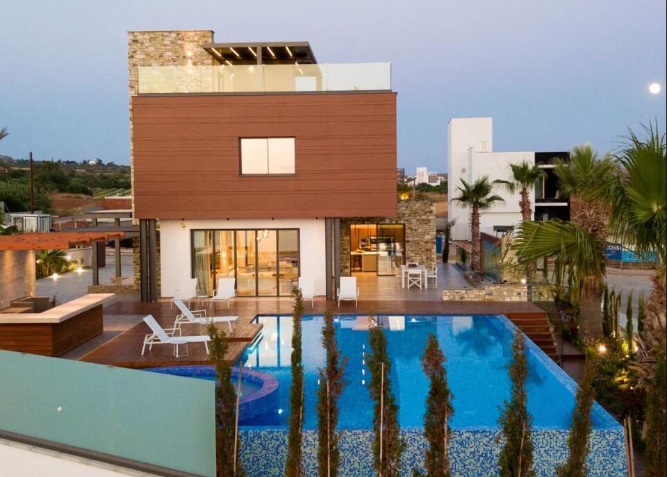 A modern 3-bedroom villa with a total area of 400 m2, featuring a swimming pool and a garden, is available for rent starting from 650 euros per day.