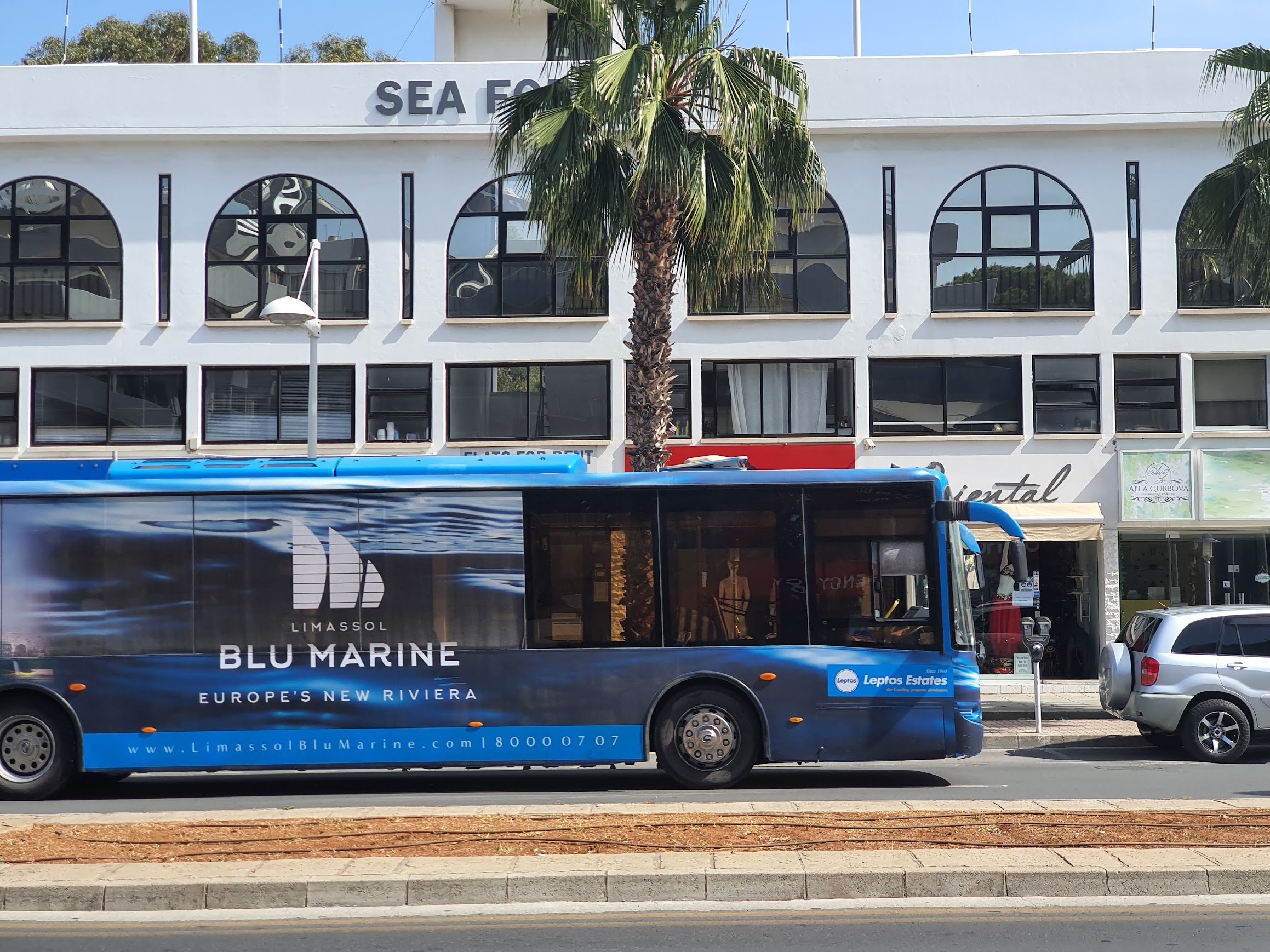 Buses are the only form of public transport on the island. In Limassol, bus services are provided by the EMEL transport company. Its fleet consists of 150 buses. The company operates about 53 bus routes in the city and the surrounding area. The main and most popular urban route is number 30, which runs along the entire coastline, connecting the tourist area of Germasoya with the central area of the old harbour and Limassol Marina. The bus stops near hotels, beaches, the MyMall shopping centre and casinos. It is one of the most popular and regular routes in the city and runs approximately every 10-15 minutes. The other bus routes connect other urban areas and suburbs with the city centre.