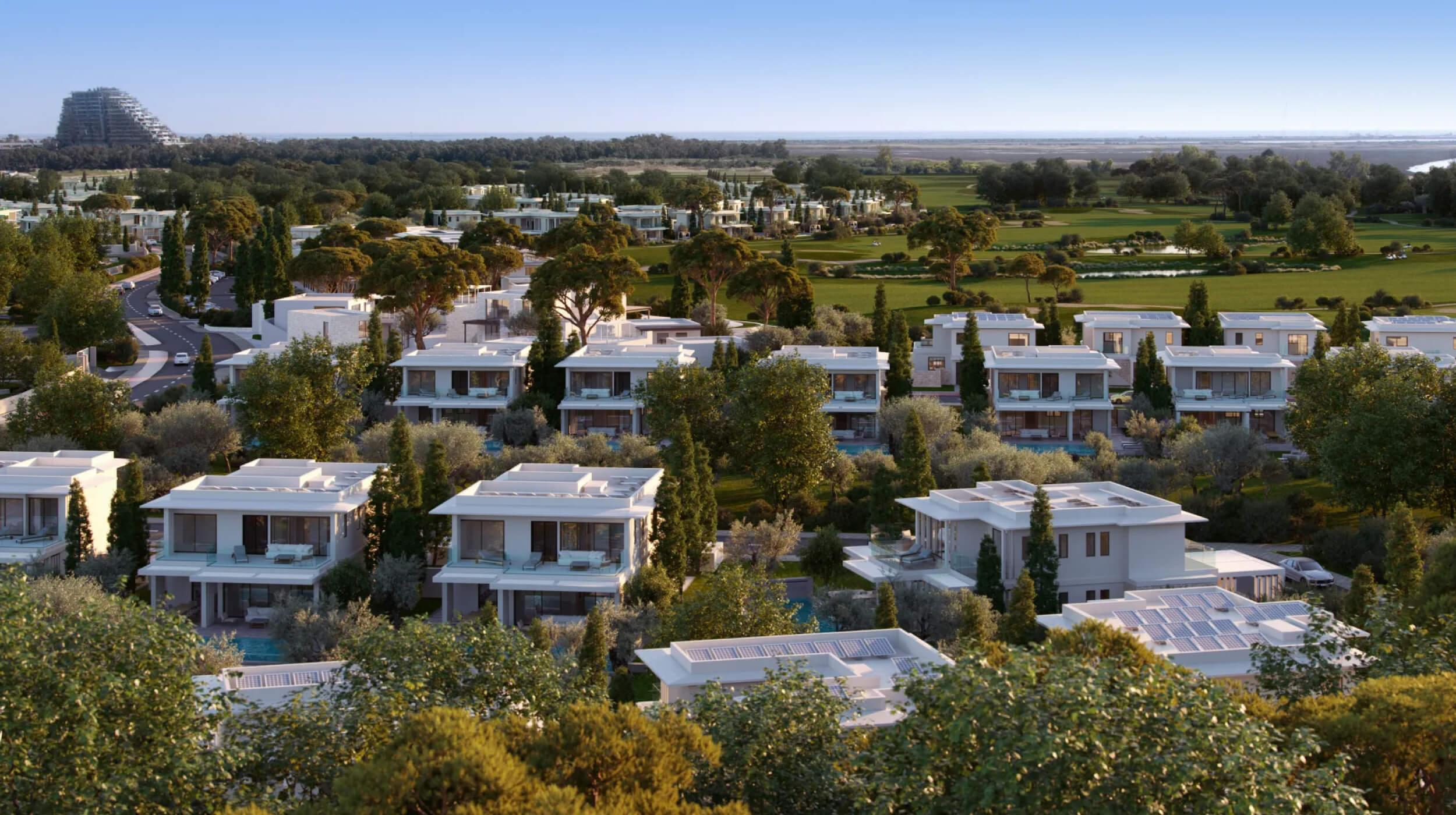 The Limassol Greens project is without a doubt one of the largest in Zakaki, covering an impressive 140 hectares. This isn't just a residential complex — it's a true resort oasis! Imagine 18 holes of golf right at your doorstep. Everything you need for a harmonious and comfortable life is right here! You'll find relaxing spa areas, well-maintained walking trails, restaurants, bars, and infrastructure for active recreation. The architectural composition of Limassol Greens is truly remarkable, featuring both stylish apartments in intimate residential blocks and elegant private villas. The two- and three-bedroom apartments are absolutely stunning! Future residents will love their spacious layout, large windows, and postcard-perfect views. It's truly a sight to behold: the green expanses of the golf course merge seamlessly with the sea on the horizon. The upper floors offer breathtaking panoramas that will take your breath away. The villas are true country homes within the city limits, with their own swimming pools, terraces, and the possibility of creating a garden or rooftop lounge area. Limassol Greens is the place where residents can enjoy all the benefits of a resort environment! Imagine a fitness club, children's and sports playgrounds, and areas for relaxation and socializing. And just a short, two-minute drive away, you'll find the dazzling lights of the City of Dreams Mediterranean resort, the endless beach of Lady's Mile, and the scenic coastal promenade of modern Limassol.