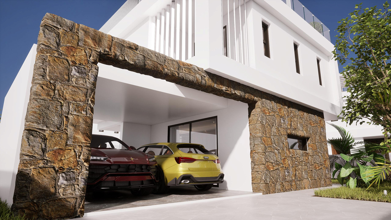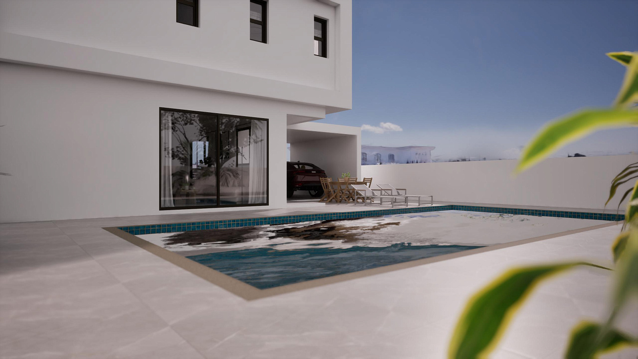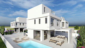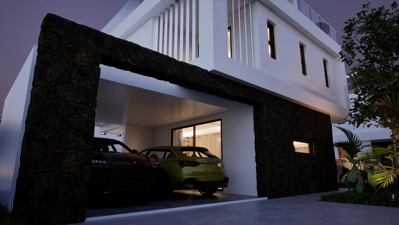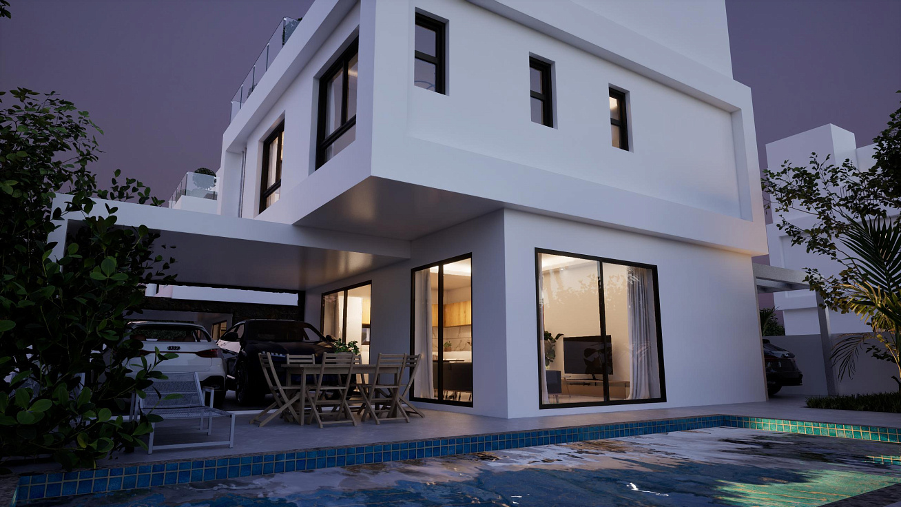 A complex of four duplex villas in the area of Pernera, Famagusta. Houses with private pools and parking. Each project includes an open-plan kitchen and living room, three bedrooms and three bathrooms. The area has everything you need for everyday life: shops, restaurants, schools and medical centers are in the immediate vicinity.