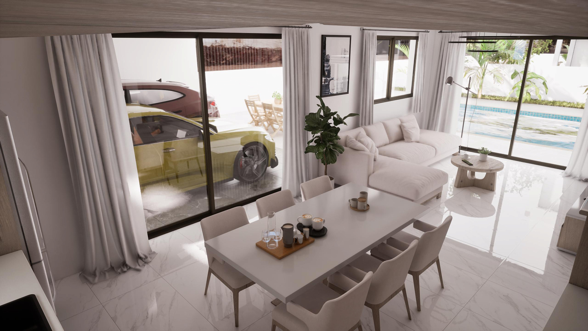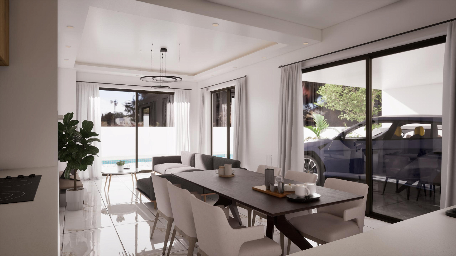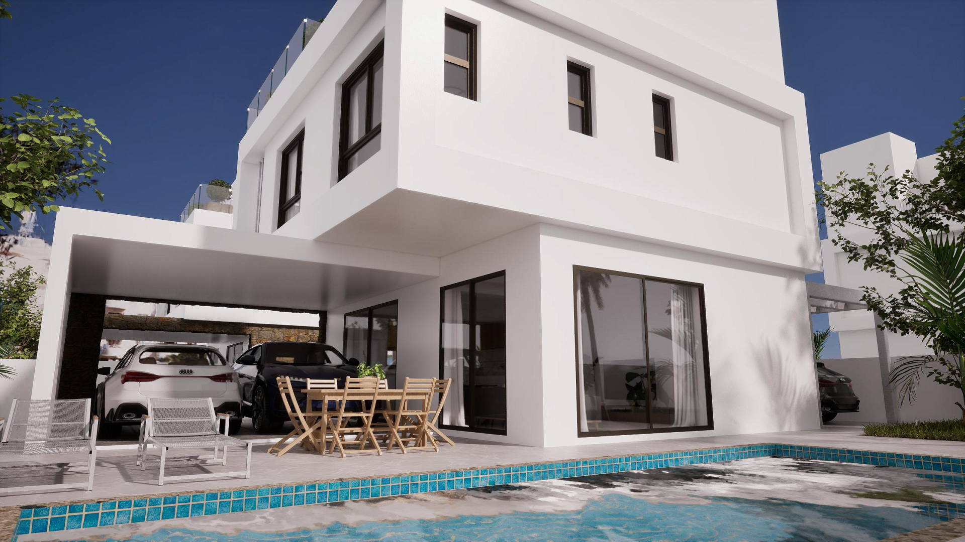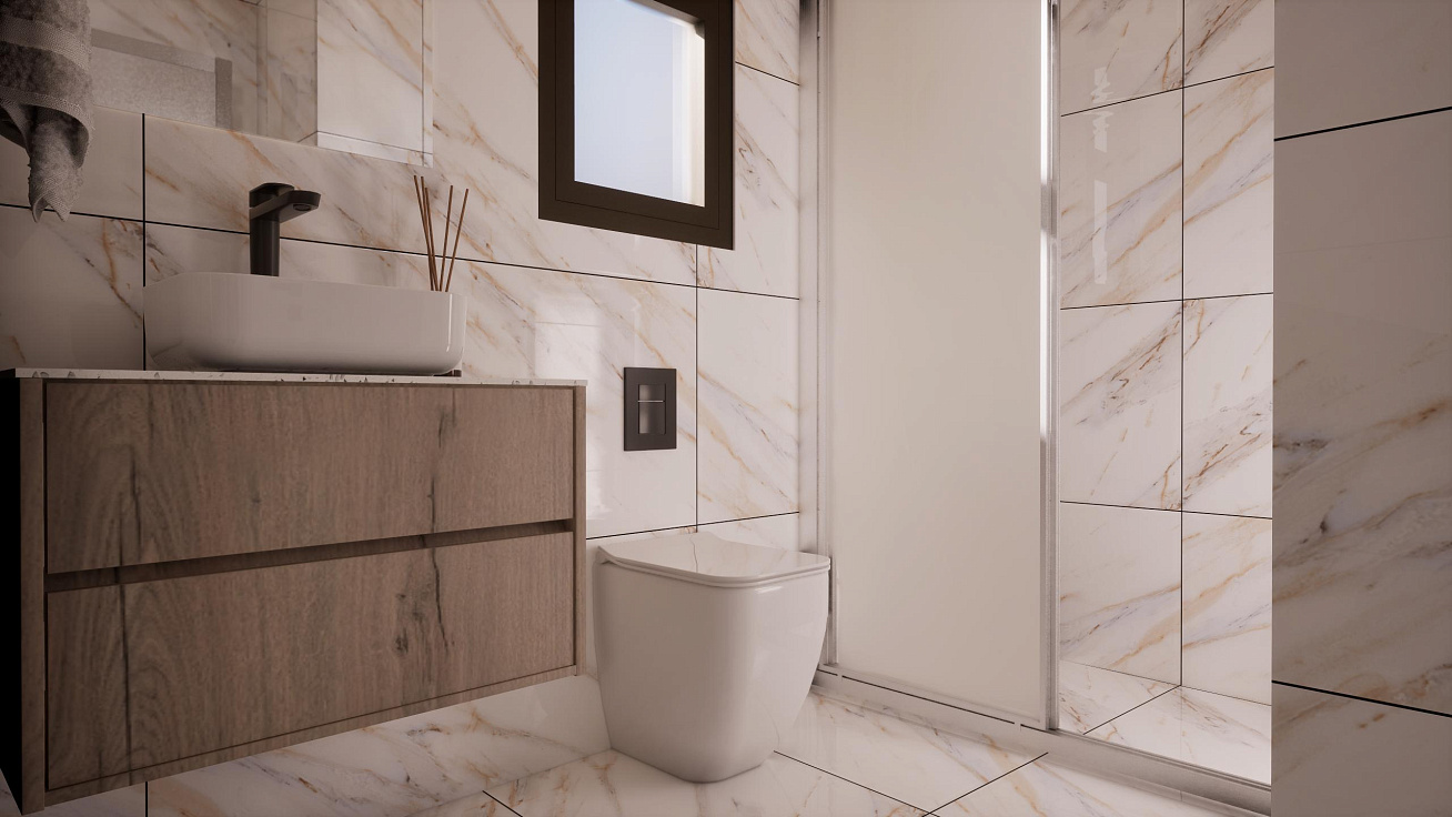 A complex of four duplex villas in the area of Pernera, Famagusta. Houses with private pools and parking. Each project includes an open-plan kitchen and living room, three bedrooms and three bathrooms. The area has everything you need for everyday life: shops, restaurants, schools and medical centers are in the immediate vicinity.