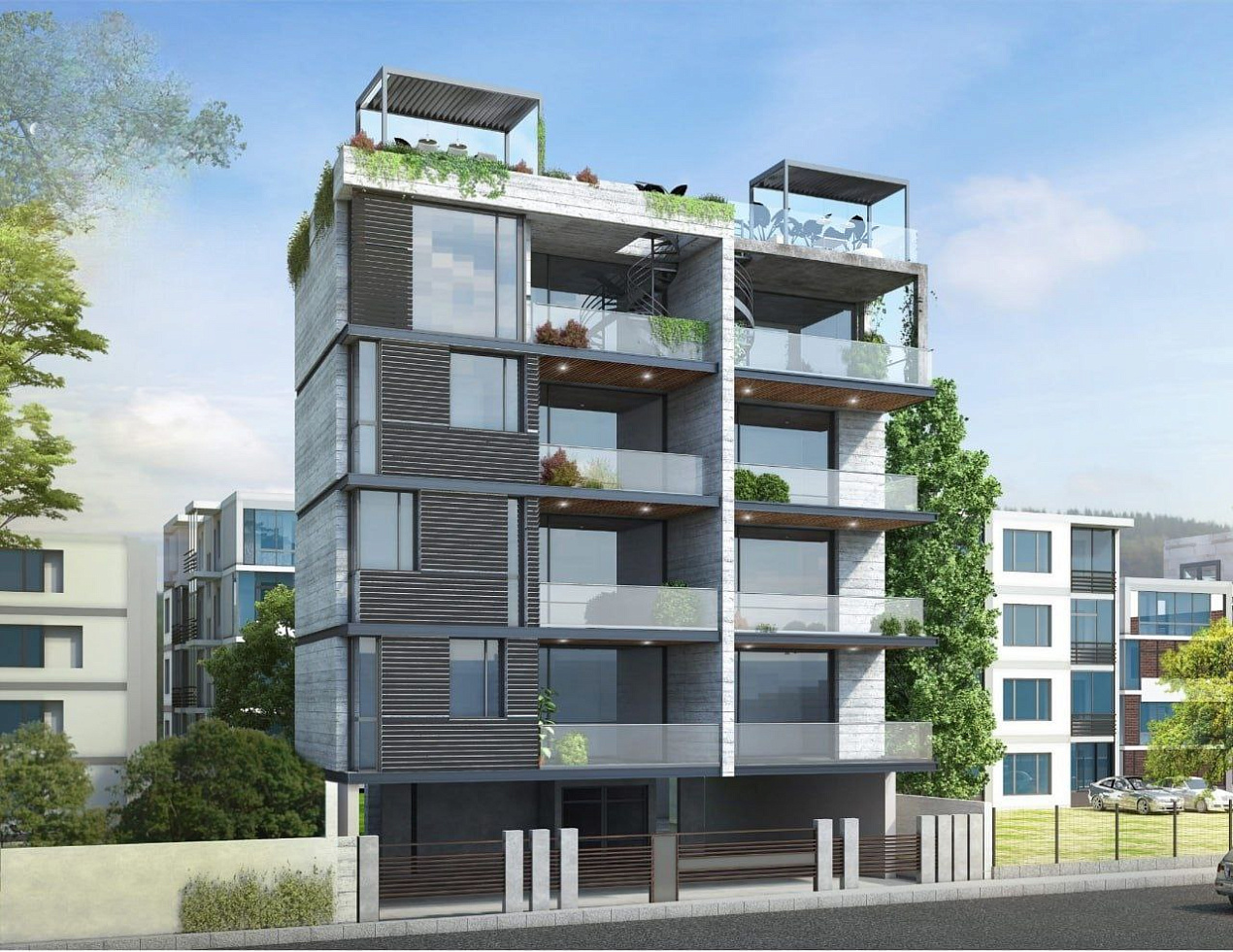 A modern complex in the Town Center area of Larnaca. The four-storey building has 8 apartments of two types (type A, type B and penthouse). The apartments consist of an open-plan living room and kitchen, 2 bedrooms, 2 bathrooms, as well as 2 balconies and roof terraces for penthouses.