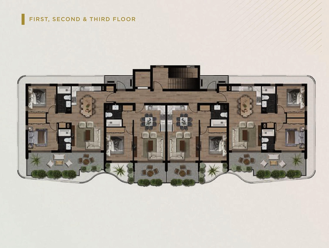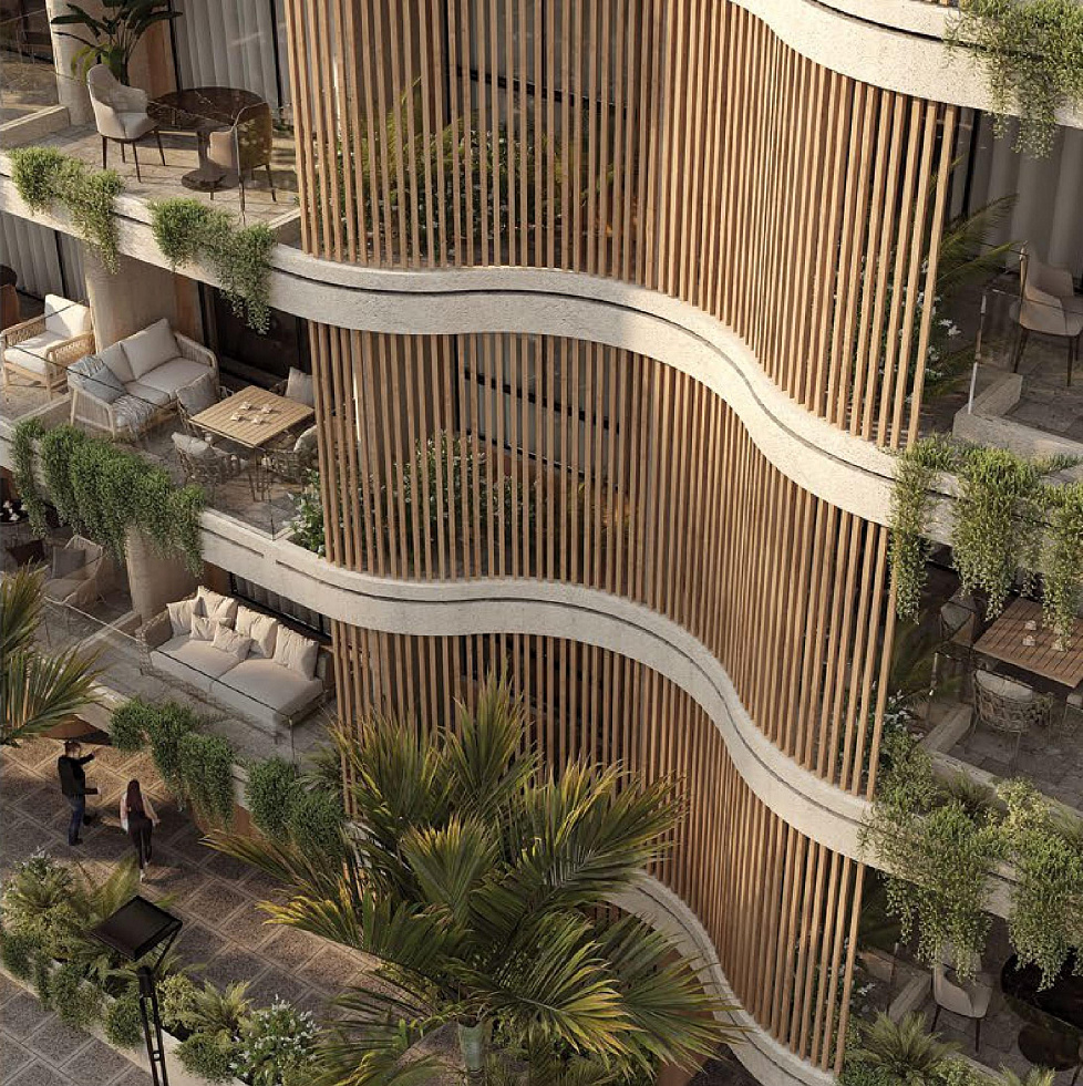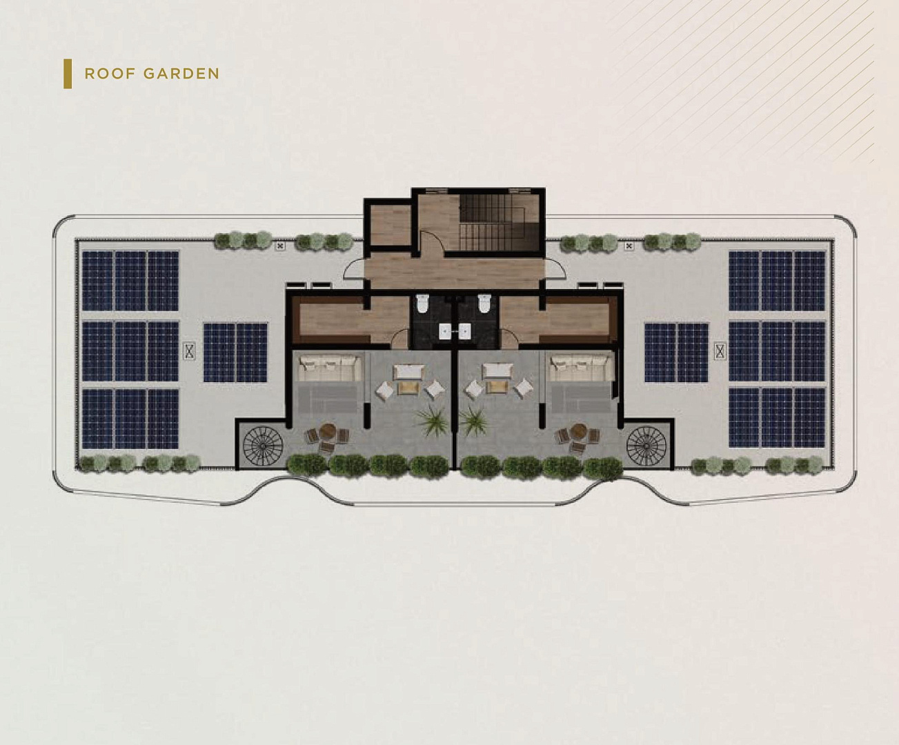The open layout of the living room, dining room and kitchen creates a seamless connection between the interior and exterior, and large verandas offer panoramic views of the sea or the city. Roof gardens are provided for the penthouses.