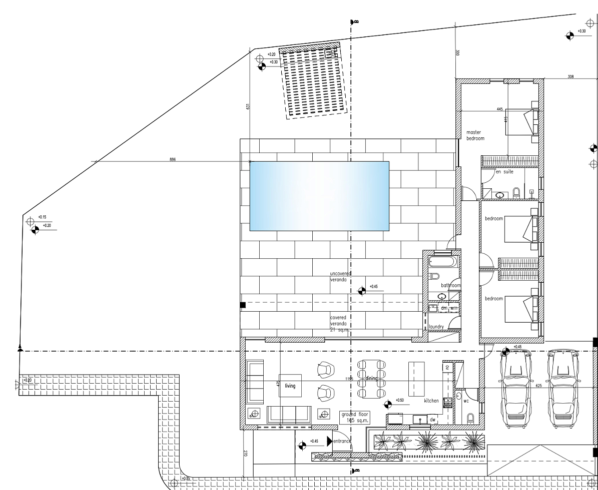 Frixos Complex is a new complex in Pyla, Larnaca. It is just a 5-minute drive from the best beaches of Larnaca Bay and the Palm Beach and Frixos Suites hotels. In addition, Larnaca International Airport and the city center are a 15-minute drive away. The first phase of the project includes the construction of 9 houses. In the next stages, 18 more houses will be built. 9 luxurious two-storey houses are surrounded by greenery throughout the complex. The project is designed taking into account the comfort of the owner and provides for the possibility of purchasing a private pool.