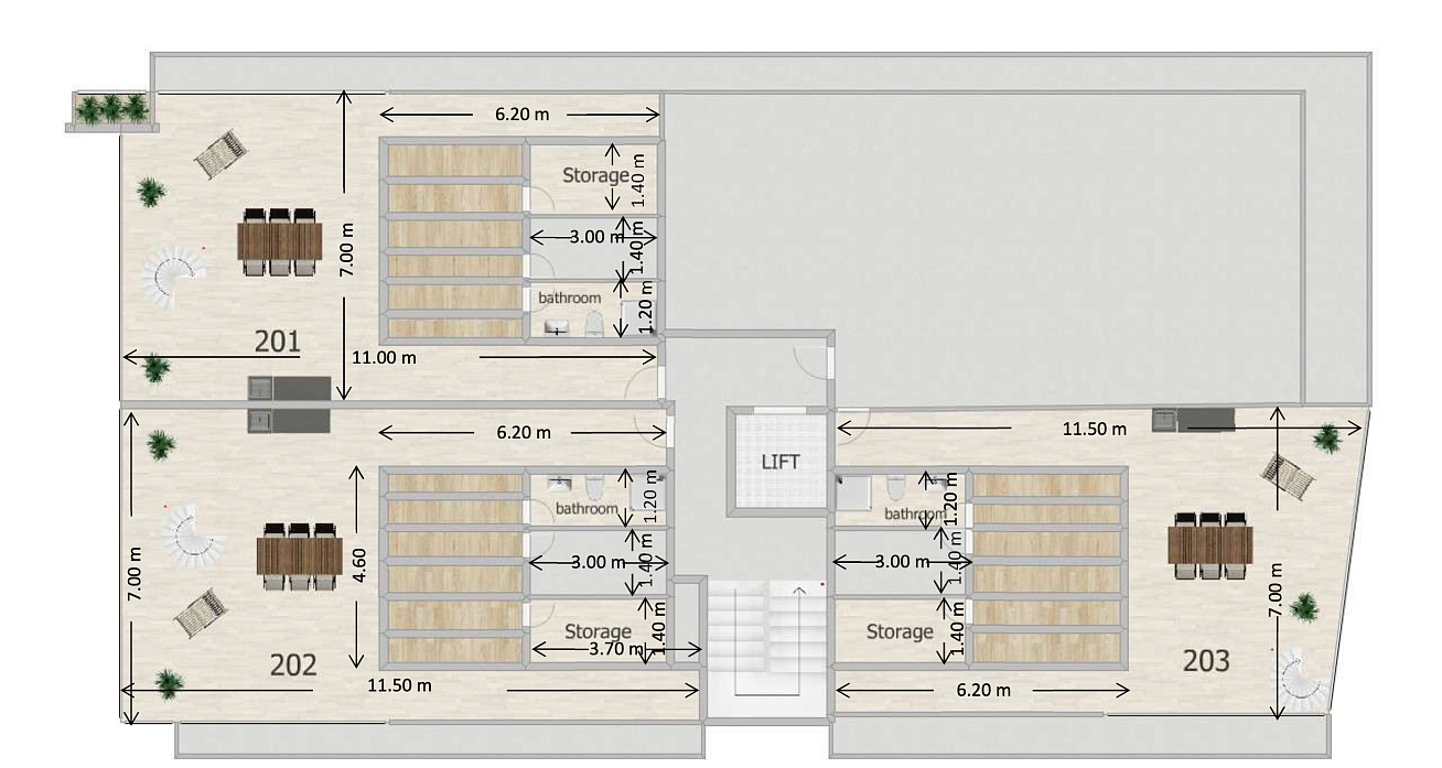 Each apartment has a covered parking space and a storage room. The apartments on the second floor include a private roof garden with views of the surrounding area. High—quality materials are used in the decoration - granite countertops, ceramic tiles, aluminum windows with double glazing and thermal insulation. The complex has an energy efficiency class A+, which guarantees an economical and comfortable stay.
