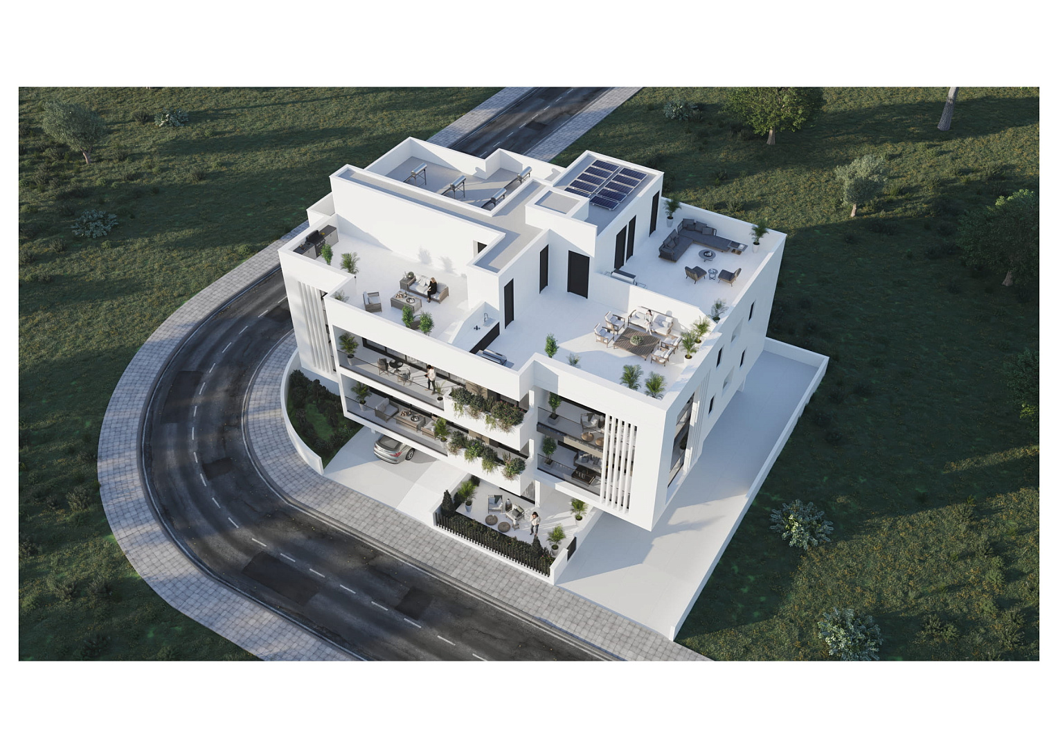 A new modern residential complex in the Vergina area, Larnaca, a short drive to the beach. There are only 7 apartments in the complex. The apartments are located on 2 floors and one apartment is located on the ground floor. There is a roof garden for the apartments on the top floor.