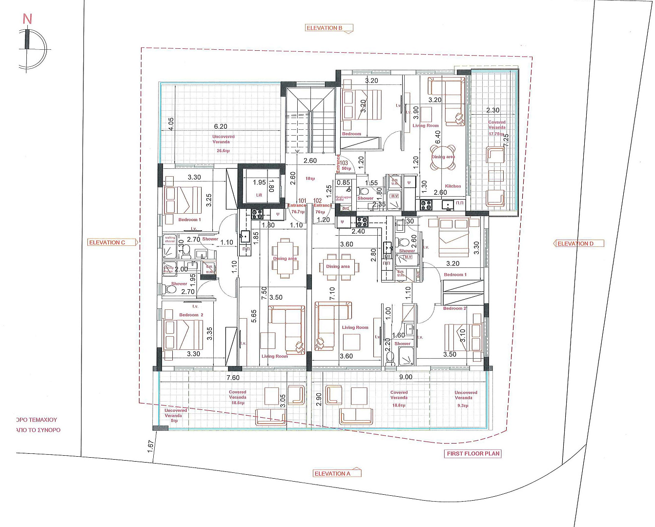 A new residential complex in the Livadia area, Larnaca. The modern project, located just 1200 meters from the sea, combines the tranquility of the coastal area and the convenience of proximity to the city. It is only a 5-minute drive to the Finikoudes promenade and the center of Larnaca, as well as easy access to the highway connecting all major cities of Cyprus.