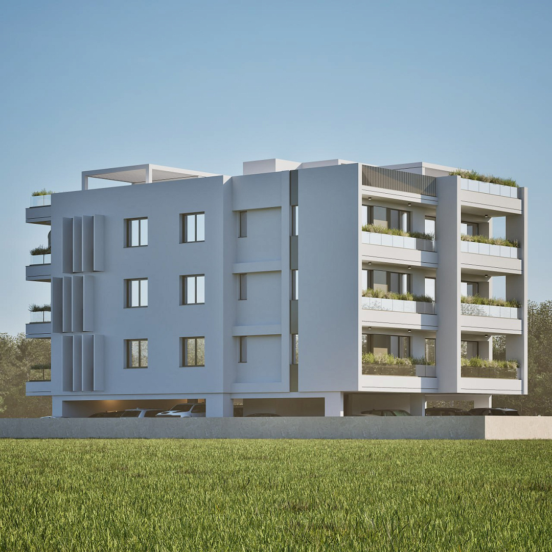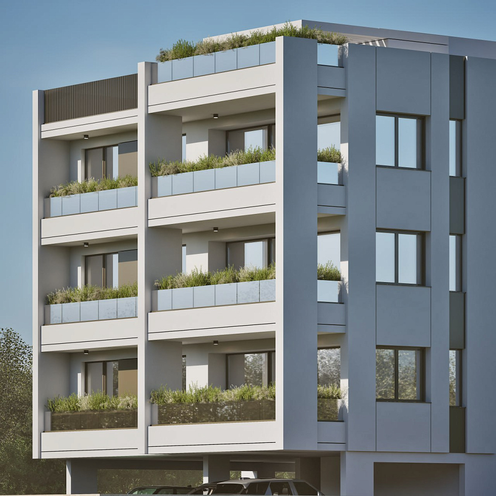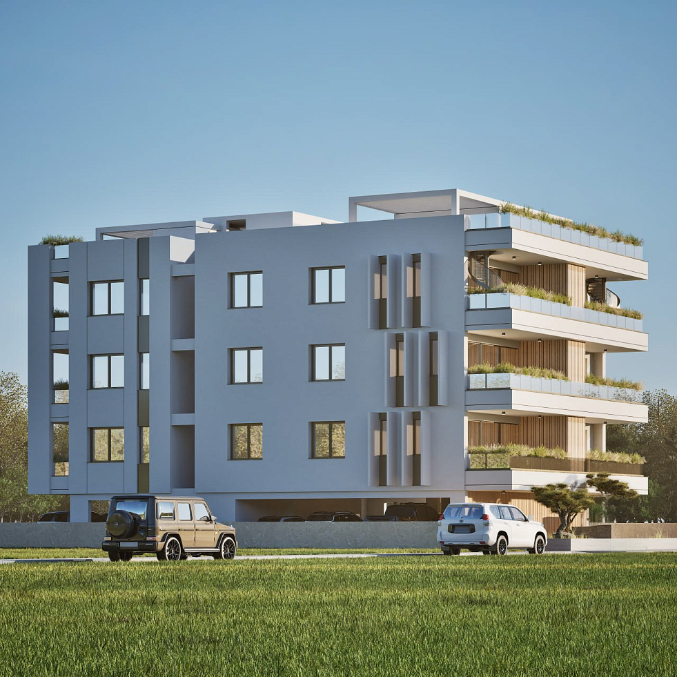 The new residential complex in the Aradippou area, Larnaca is a modern building with thoughtful architecture, functional layouts and high quality construction. The project is made using energy-efficient materials, including thermal insulation, modern aluminum windows and energy efficiency class A systems.