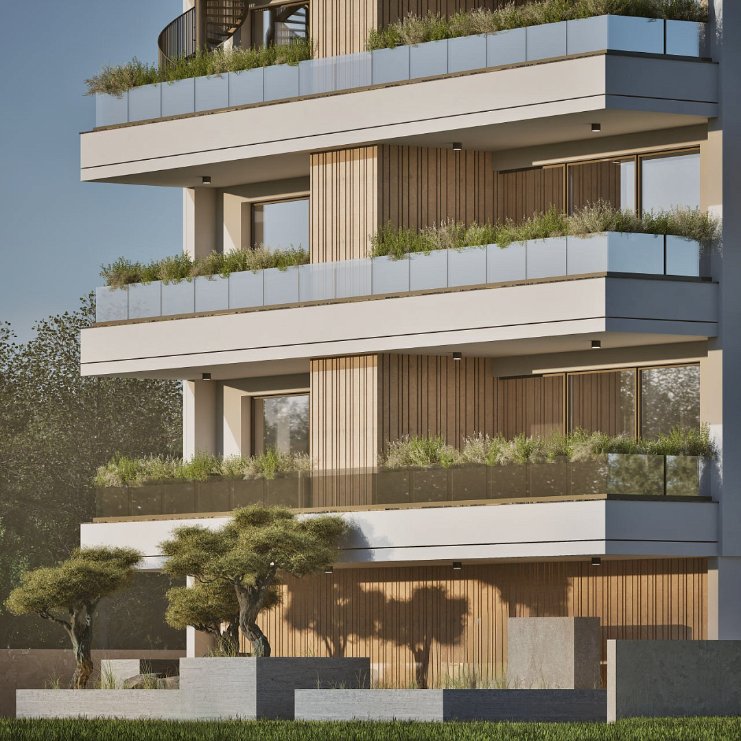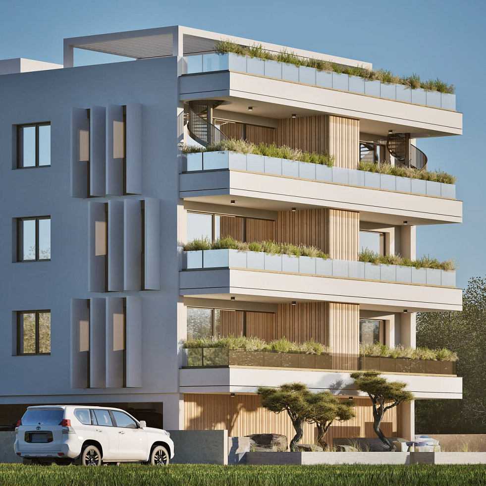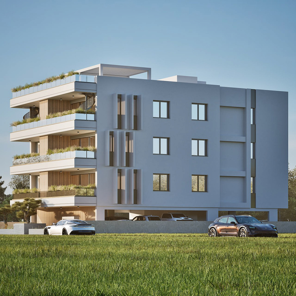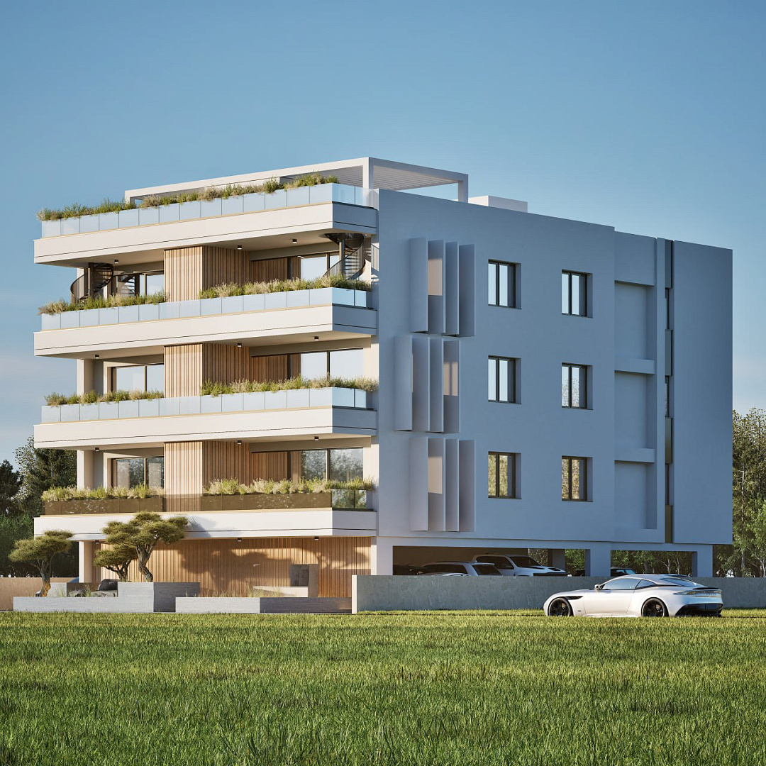 The new residential complex in the Aradippou area, Larnaca is a modern building with thoughtful architecture, functional layouts and high quality construction. The project is made using energy-efficient materials, including thermal insulation, modern aluminum windows and energy efficiency class A systems.