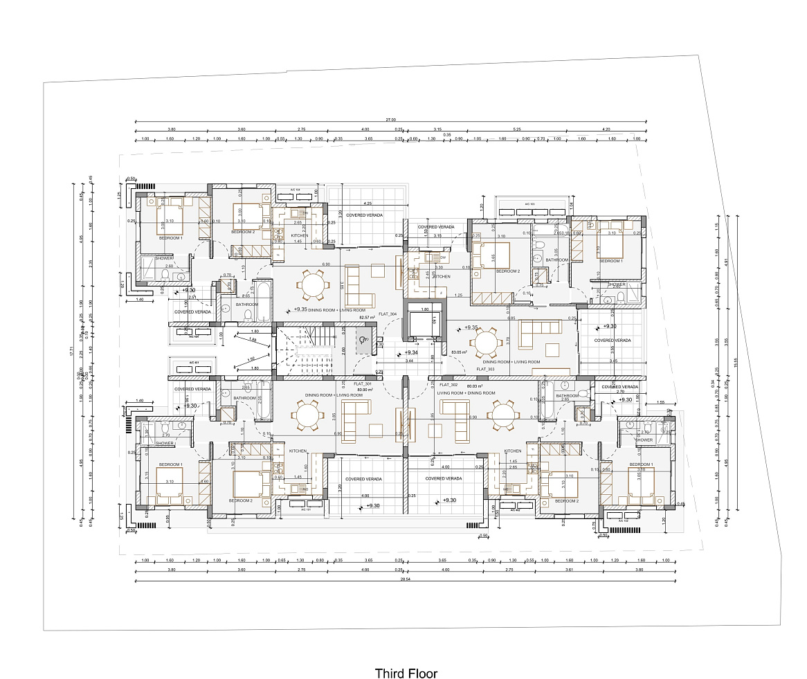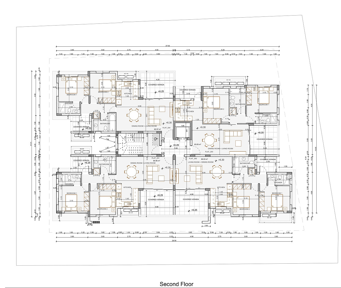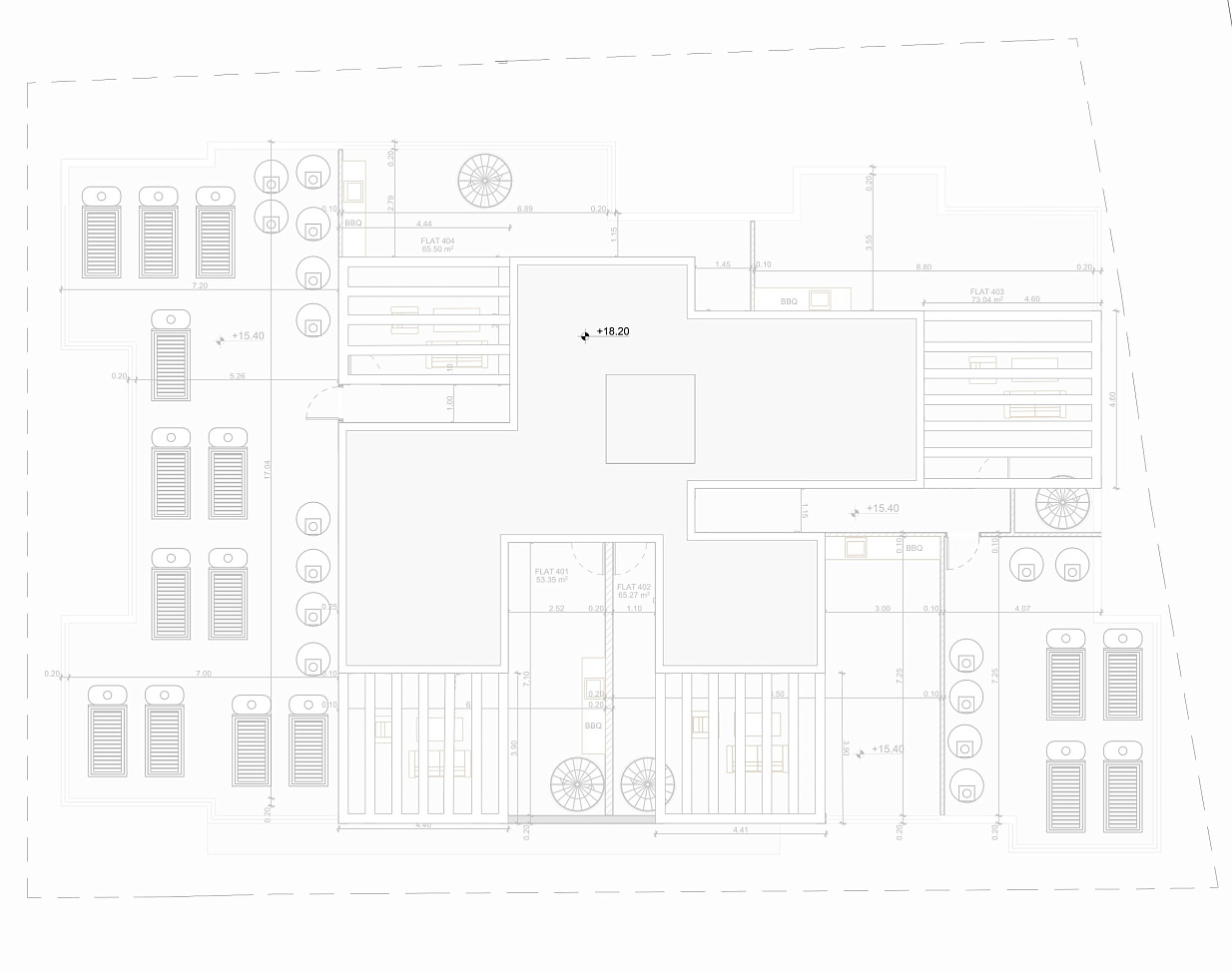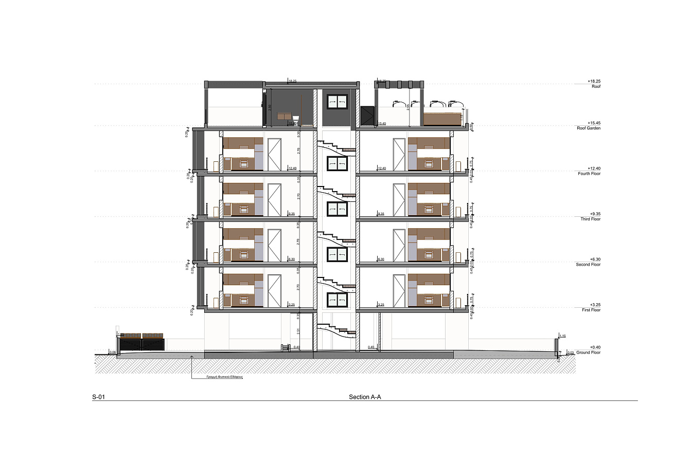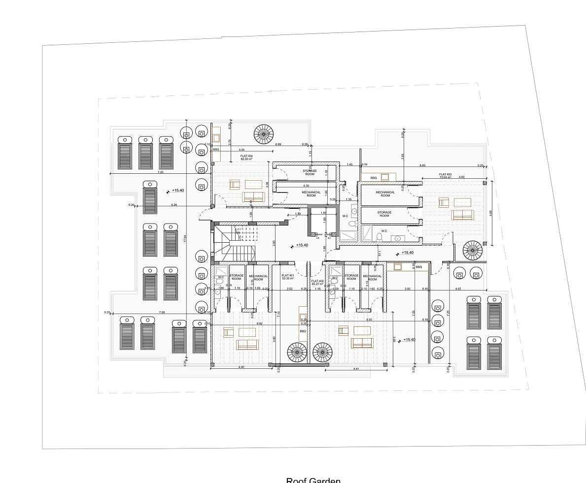 New residential complex in the area of Drosia, Larnaca. The project features twenty—two two-bedroom apartments, all with spacious and modern living areas. The apartments on the fifth floor with two bedrooms and two bathrooms have large covered balconies, as well as two rooms on the roof with three bathrooms, which are accessible only to owners who prefer a luxurious life. It features a large bar and a barbecue area in the rooftop garden, as well as panoramic views of the famous salt lake of Larnaca. Each apartment has one parking space and a storage room on the ground floor.