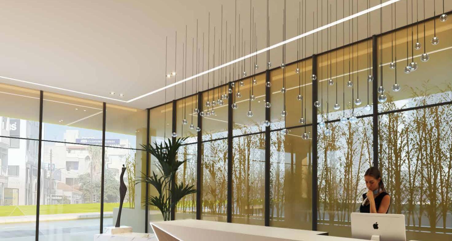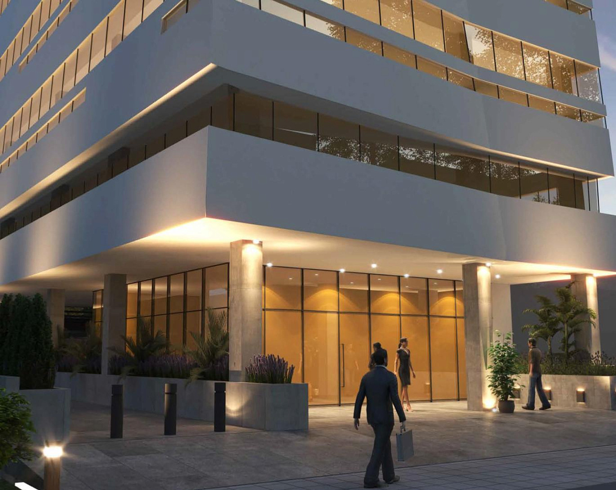 Athalassis white is a new office building in Strovolos, Nicosia. This unique building consists of seven office floors, two basement floors, 59 parking spaces and a terraced roof garden with a communal living room on the eighth floor. Each room in the building is designed to reduce environmental impact and energy consumption through the use of advanced methods, tools and solutions in the field of environmentally friendly construction in accordance with the latest standards in the field of environmental protection and sustainable development. An astute approach to open-plan design provides unparalleled flexibility, allowing each office space to be adapted to meet any unique requirements. The lobby on the ground floor and all office premises are equipped with a centralized DAIKIN VRV air conditioning system.