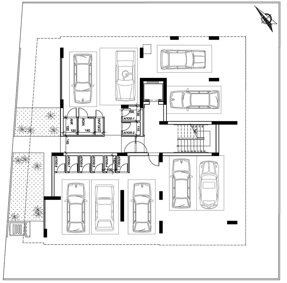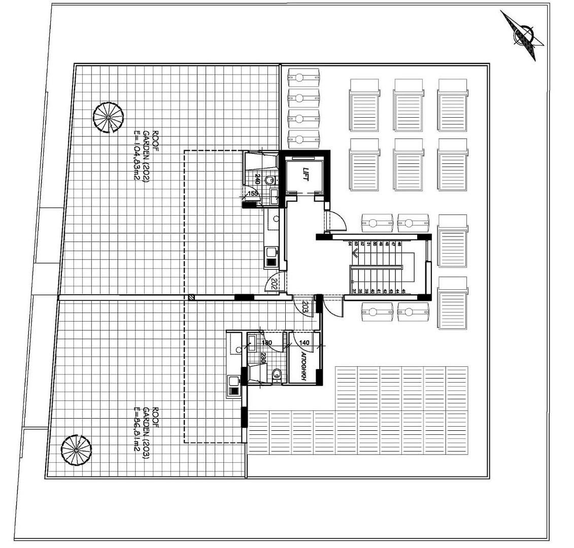 Private storage rooms and covered parking spaces are provided for the convenience of residents. The main entrance is equipped with a video intercom, and access to the territory is through an electric gate with remote control, which ensures safety and comfort. The complex includes a four-level elevator with access to the roof, which further enhances the functionality of the building.