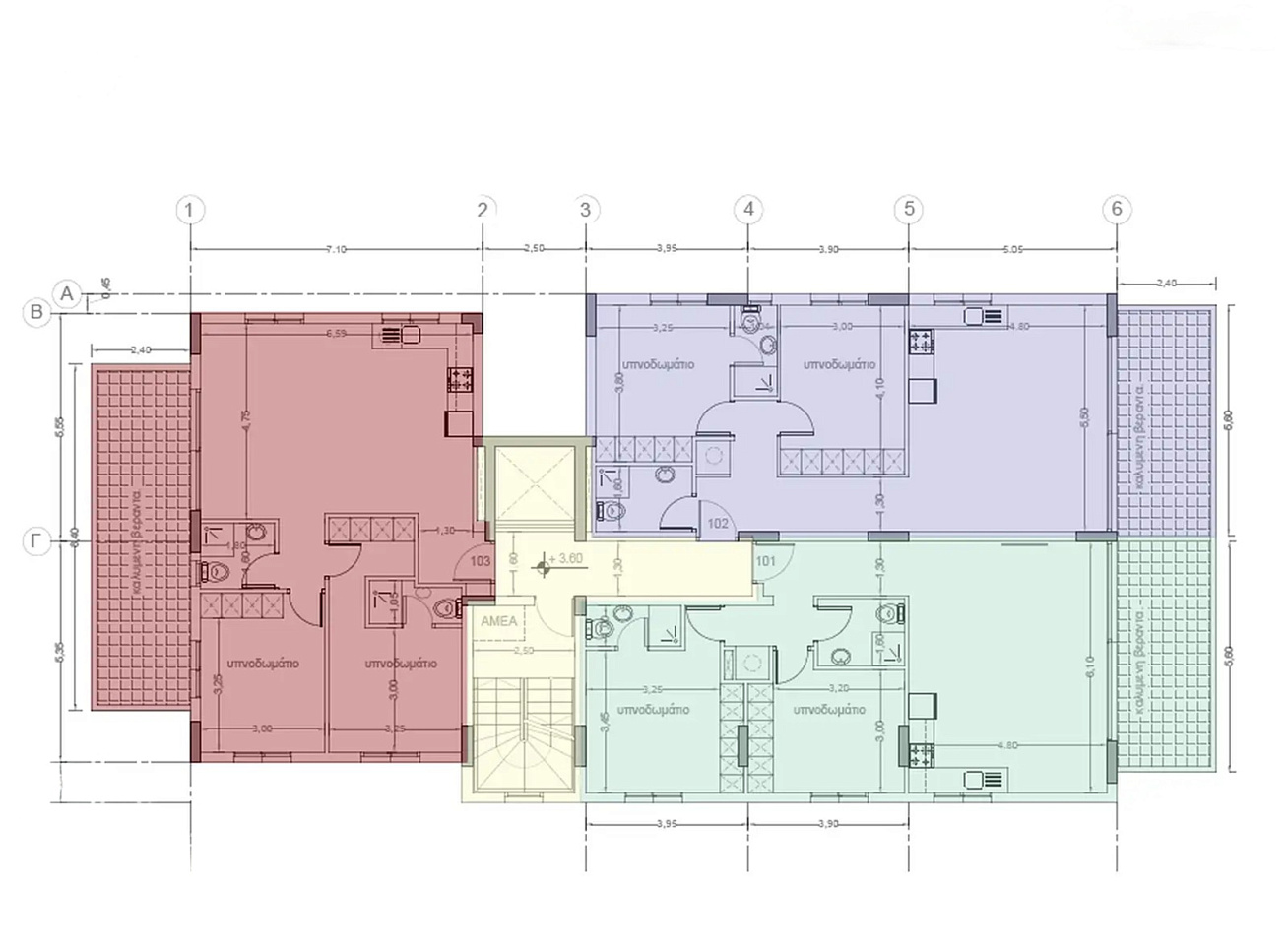 Modern residential complex in Latsia, Nicosia. The building consists of six luxurious double apartments, designed with an emphasis on functionality and comfort. The apartments have spacious and ergonomic interiors, a modern kitchen, two bedrooms and a terrace. There is also a private parking space and a storage room for each apartment. The apartments are equipped with 2.32 kW photovoltaic panels.