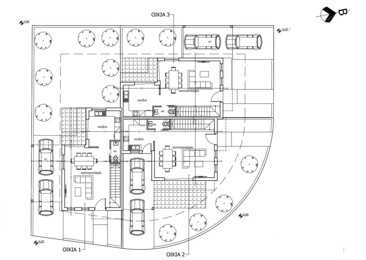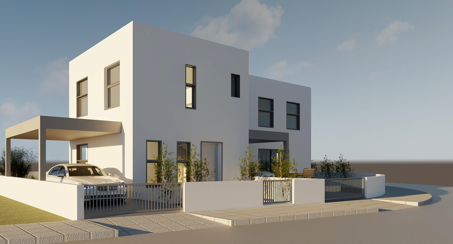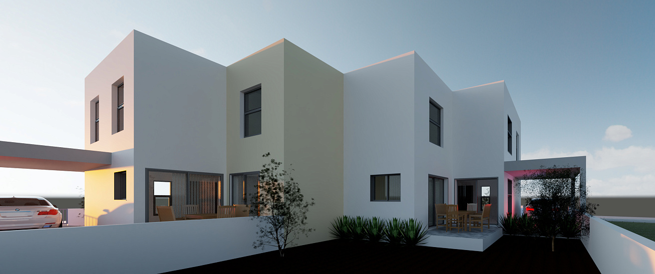 The residential complex is located in the Deftera area, Nicosia. The project consists of three residences. The house includes an open-plan kitchen and living room, a guest toilet, 2 or 3 bedrooms, a bathroom and spacious interior and exterior spaces. Private parking is available for cars.