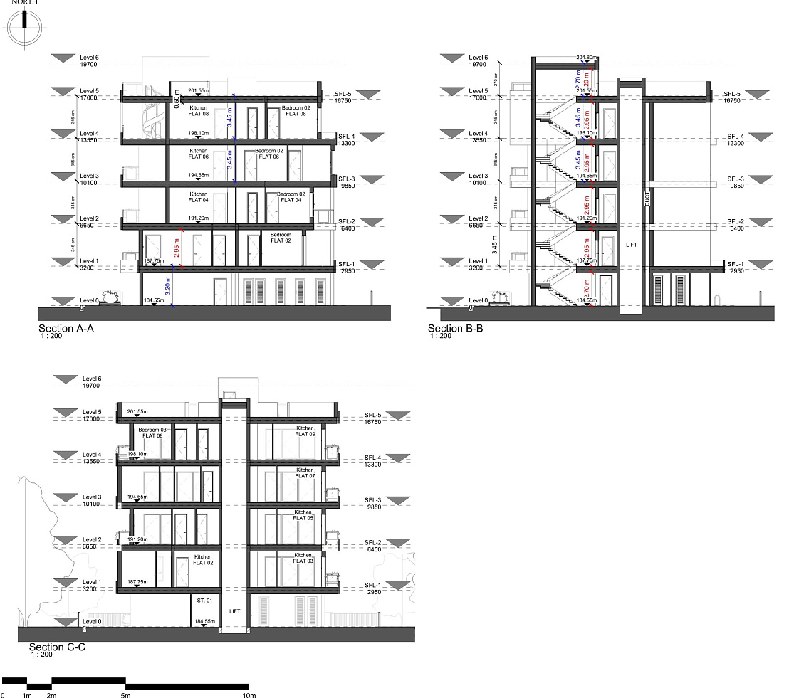 Area of objects, m2