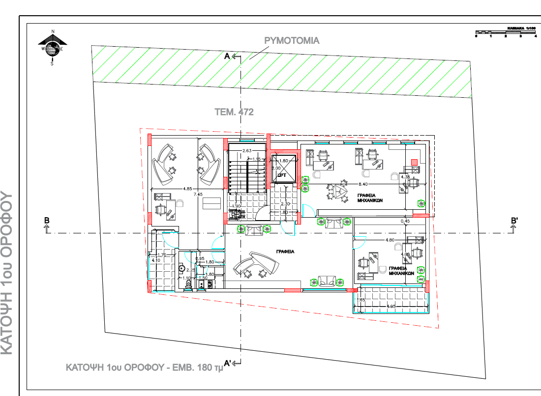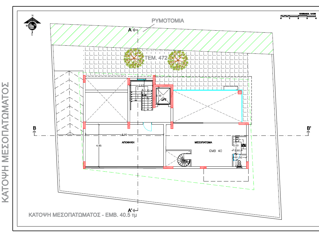 Residential complex in the area of Strovolos, Nicosia, near the shopping center. The project consists of a shop on the ground floor and four offices, three single and seven double apartments. Each store and office has its own parking space.