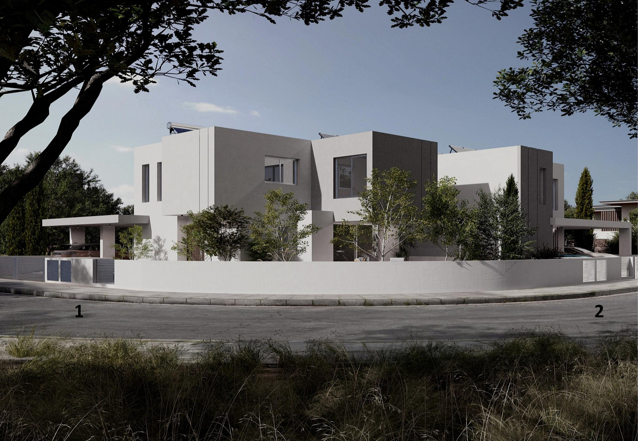 The new complex of two modern houses is located in Lakatamia, Nicosia, in one of the most promising and sought-after residential areas of the city. The project is based on a bioclimatic concept with an emphasis on energy efficiency, comfort and maximum use of natural light.
