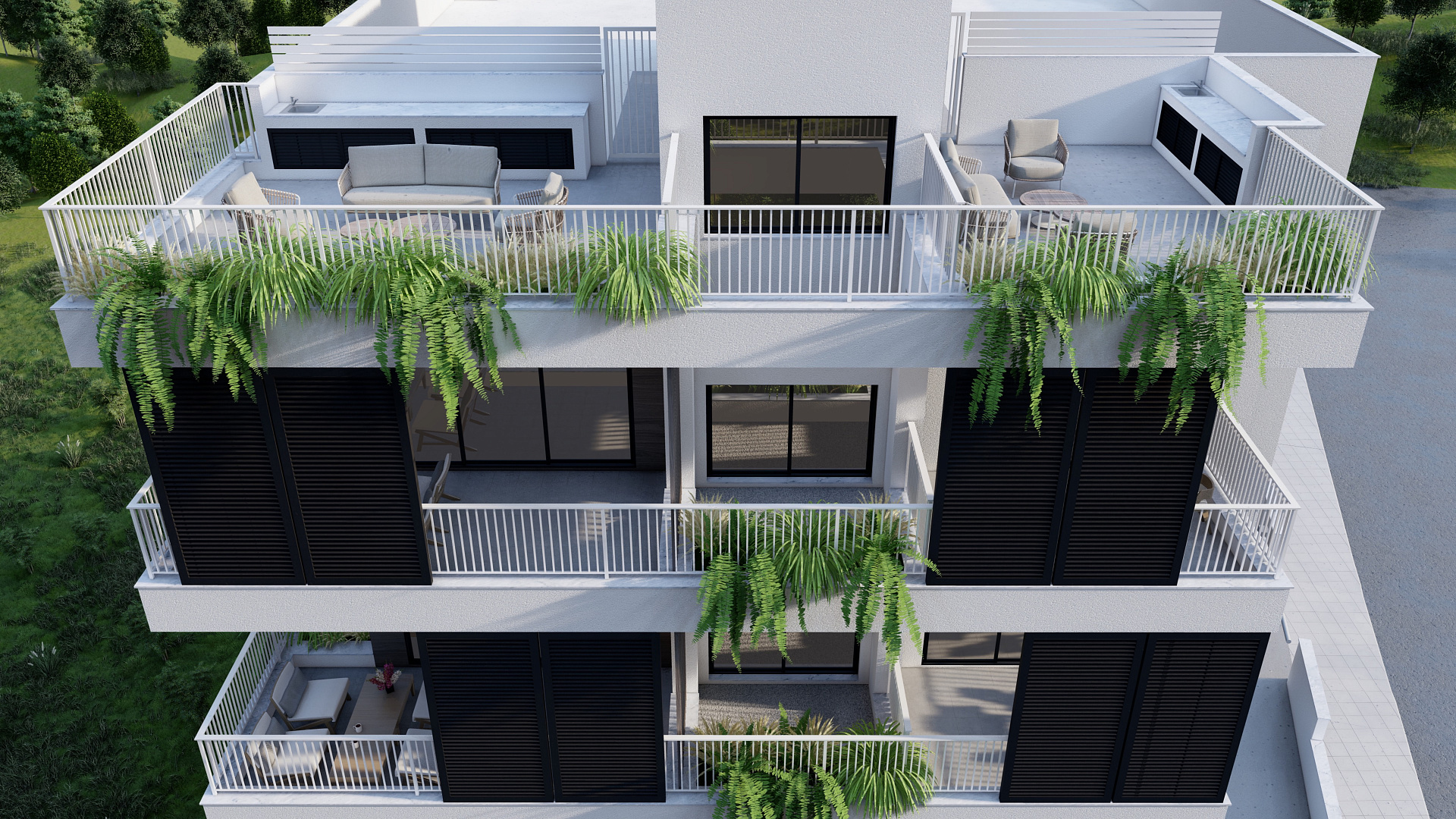 A new modern residential complex in the Agia Fyla Limassol area. The apartments are located on 3 floors. The apartment in the complex is designed with maximum comfort in mind. The project includes an open-plan living room and kitchen, as well as a covered veranda. There is a small private garden and a roof garden for the apartments on the third floor. Parking and a private storage room are also available.