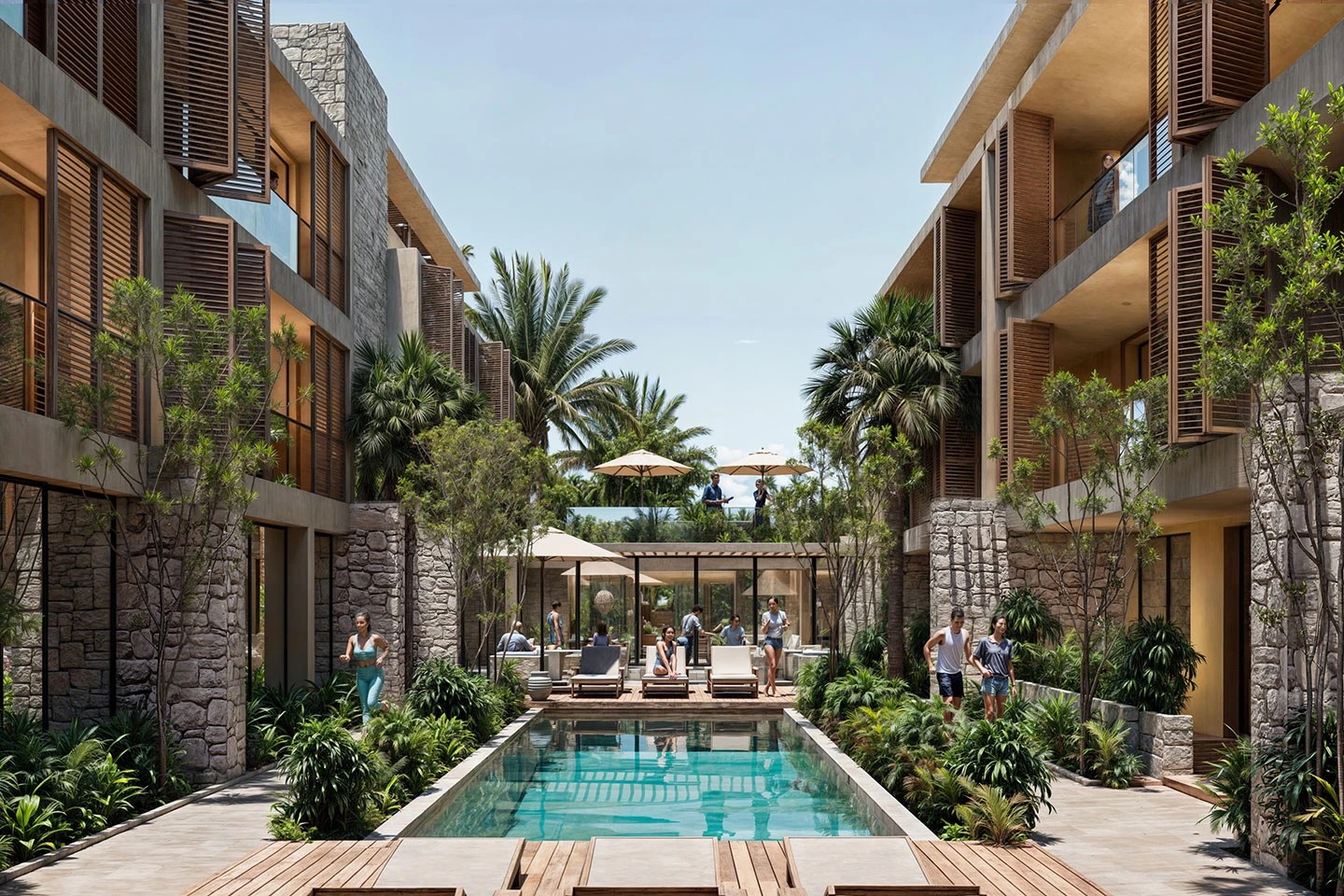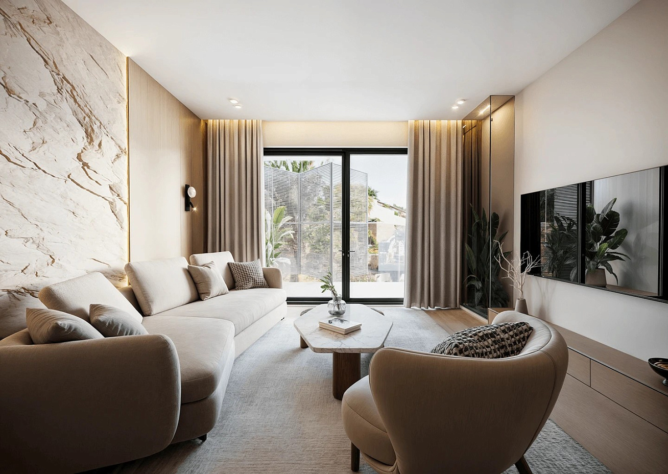 The complex is located in the cultural center of Pyrgos, thirteen kilometers from the business center of Limassol, ten minutes from the first-class beaches and St. Raphael's marina, surrounded by historical architecture and Mediterranean landscapes. The area combines rustic tranquility with convenient access to the city. It is an ideal place for modern Mediterranean life.