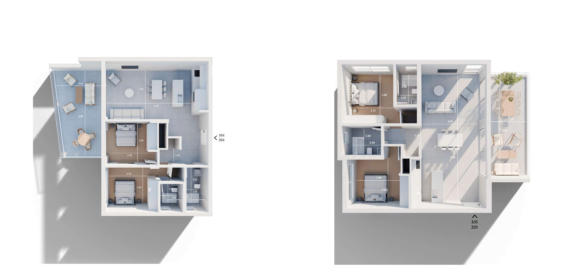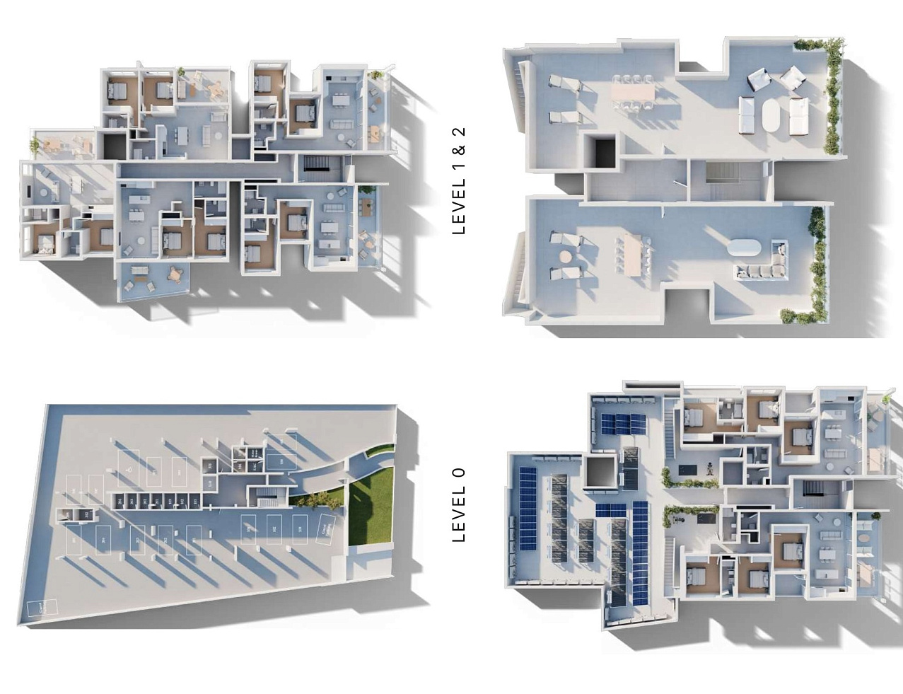 The complex includes modern apartments designed to meet high standards of quality and comfort. All apartments are equipped with a complete air conditioning system for cooling and heating, ensuring a comfortable stay at any time of the year.
