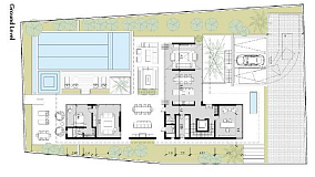 The total area of the villa is about 1,213 m2, including spacious interior spaces, covered and open verandas. The house has modern engineering solutions, such as VRV air conditioning and underfloor heating, providing comfort at any time of the year. The villa has a private pool and is located in a prestigious location next to the sea.