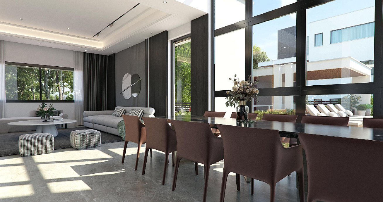 A complex of villas in the municipality of Agios Tikhonas. A 5-minute drive from the Four Seasons and Poseidonia hotels in the tourist area of Limassol and close to all amenities. Private parking, underfloor heating, electric blinds, private driveway, swimming pools, elevators, spacious bedrooms with bathrooms and storage rooms. Sea view and mountain view.