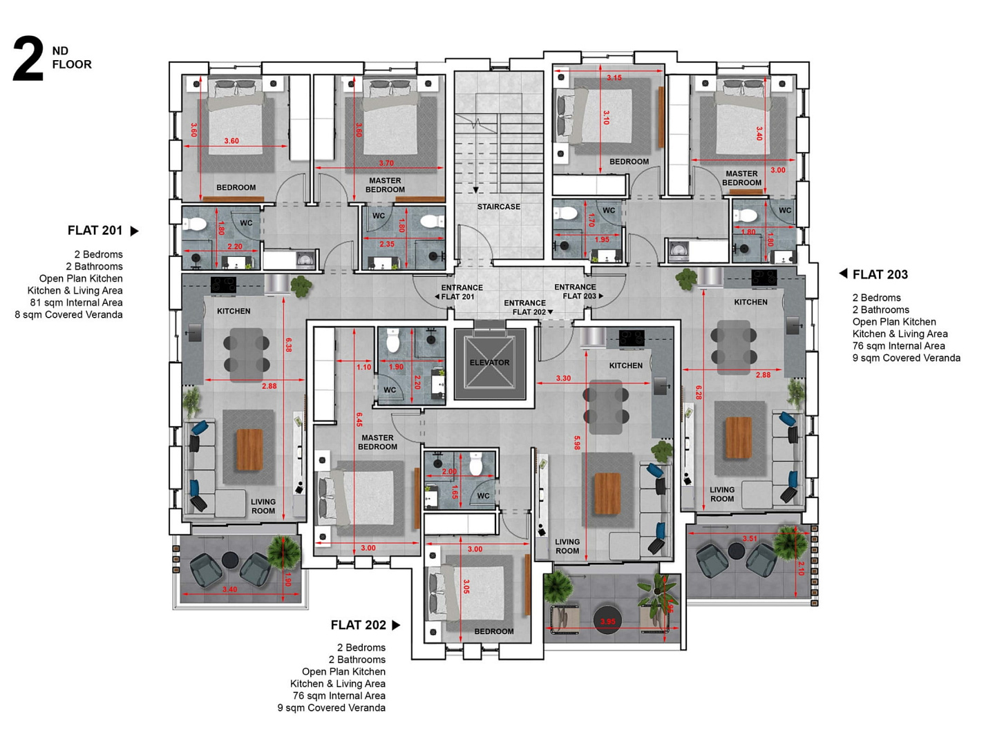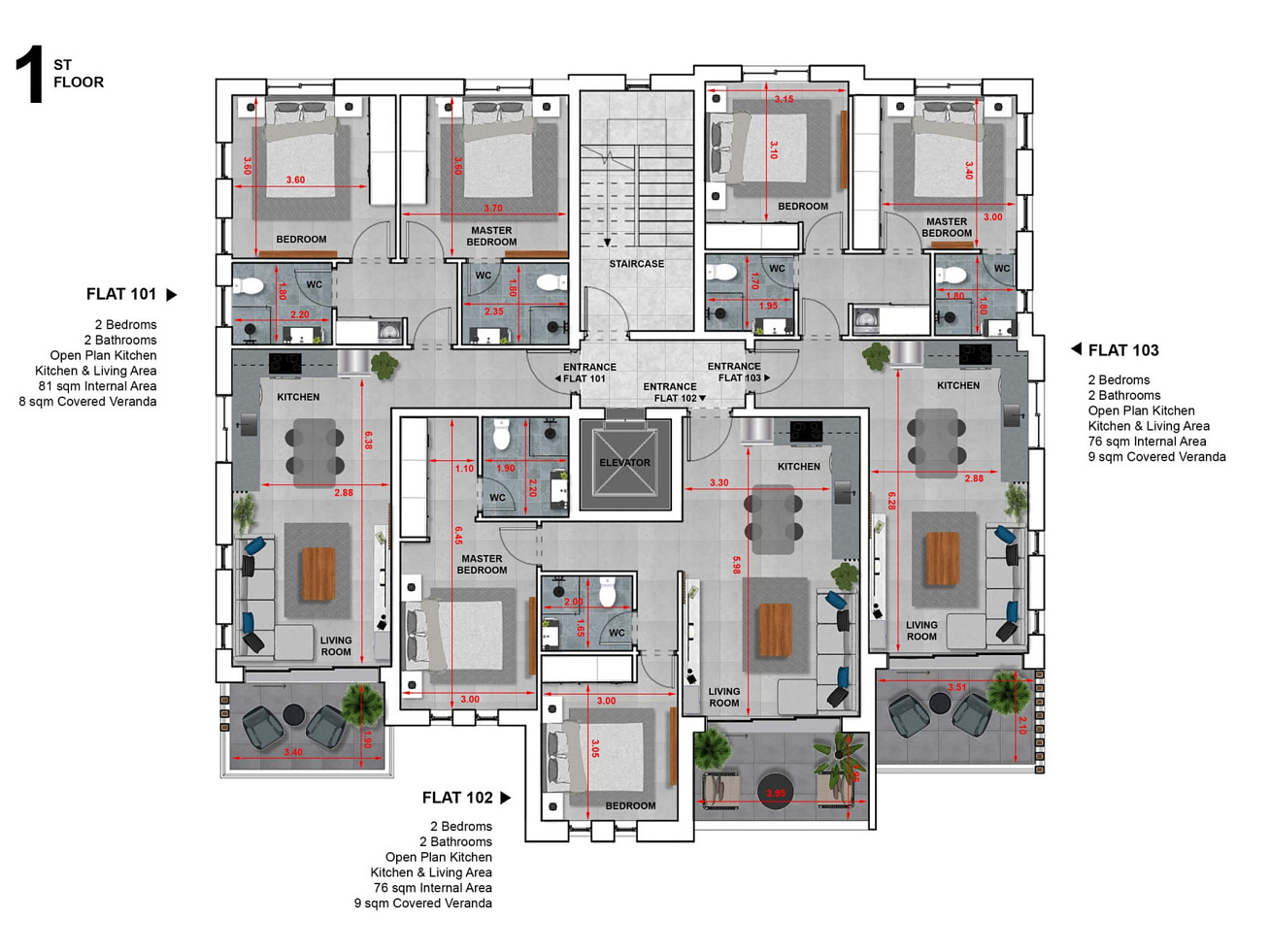 A residential project located in the lively area of Asomatos, Limassol. The high-class complex offers privacy and comfort. There are only six apartments in the complex. The apartments on the second floor have rooftop garden terraces with spectacular views. Each apartment has a private covered parking and a special storage room. The project has an energy efficiency category A.
