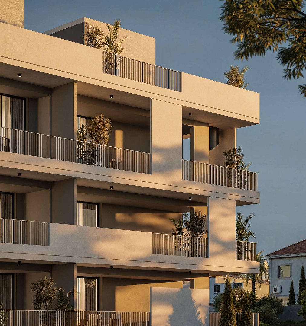 Residential complex in the area of Agios Athanasios, Limassol. It is a carefully designed complex characterized by modern architecture, exquisite simplicity and attention to everyday comfort. The project consists of two modern blocks with a height of three floors. Residents can use a number of shared facilities, including a fully equipped gym and a communal swimming pool. The complex is located near the necessary amenities: 100 m from the school, 2.5 km from the beach, 60 km from the airport, 300 m from public transport.